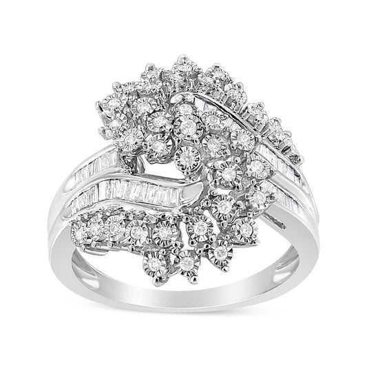 .925 Sterling Silver 1/5 Cttw Miracle-Set Diamond Heart Cross-Over Bypass Ring (I-J Color, I2-I3 Clarity)