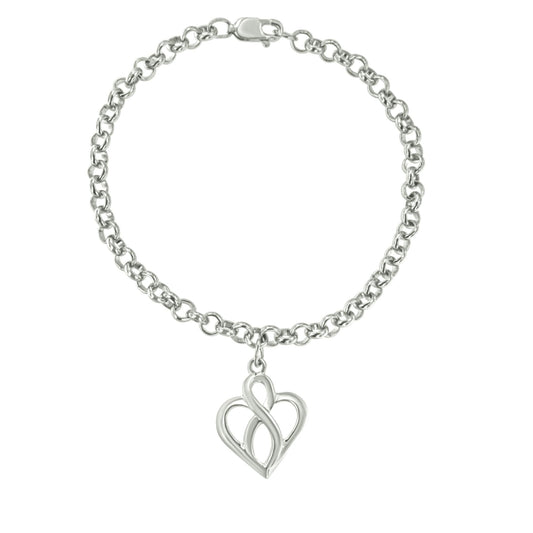 .925 Sterling Silver Open Heart with Center Vertical Infinity Chain Charm Bracelet - Size 7"