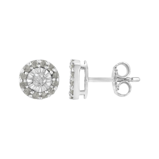 .925 Sterling Silver 1/2 cttw Miracle-Set Round Diamond Halo Stud Earrings (I-J Clarity, I3 Color)