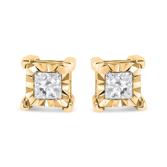 .925 Sterling Silver Miracle Set Princess-cut Diamond Solitaire Stud Earrings (H-I Color, I2-I3 Clarity)