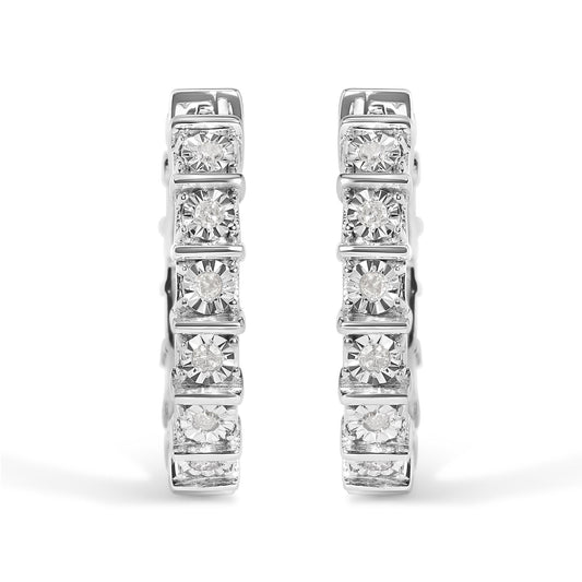 .925 Sterling Silver 1/2 Cttw Diamond Bar and Plate Eternity Hoop Earrings (I-J Color, I3 Clarity)