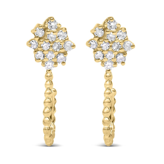 14K Yellow Gold Plated .925 Sterling Silver 1/10 Cttw Diamond Floral Cluster and Beaded Hoop Stud Earrings (H-I Color, I1-I2 Clarity)