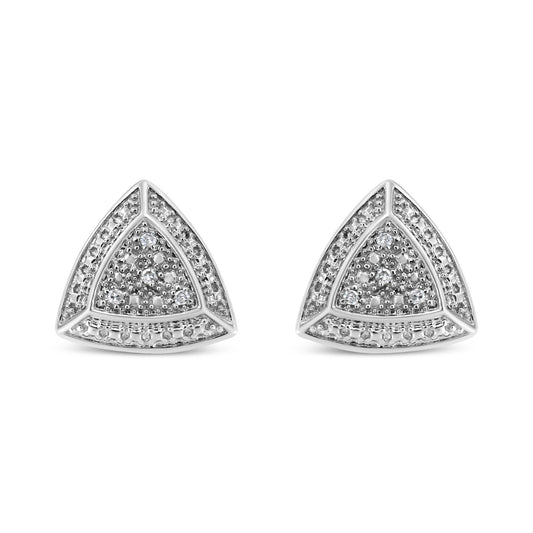 .925 Sterling Silver Diamond-Accented Trillion Shaped 4-Stone Halo-Style Stud Earrings (H-I Color, I2-I3 Clarity)