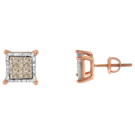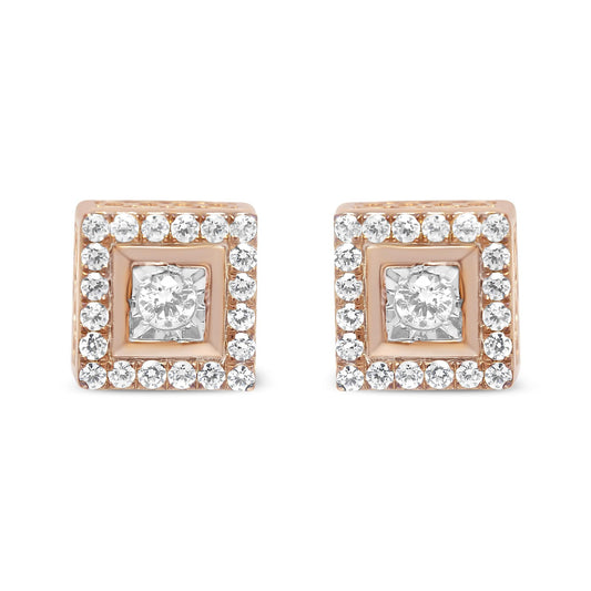 14K Rose Gold Plated .925 Sterling Silver 1/2 Cttw Diamond Halo Square-Shaped Frame Stud Earring (I-J Color, I3 Clarity)
