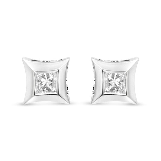10K White Gold 1/3 Cttw Invisible Set Style Princess-Cut Diamond Stud Earrings (H-I Color, SI2-I1 Clarity)