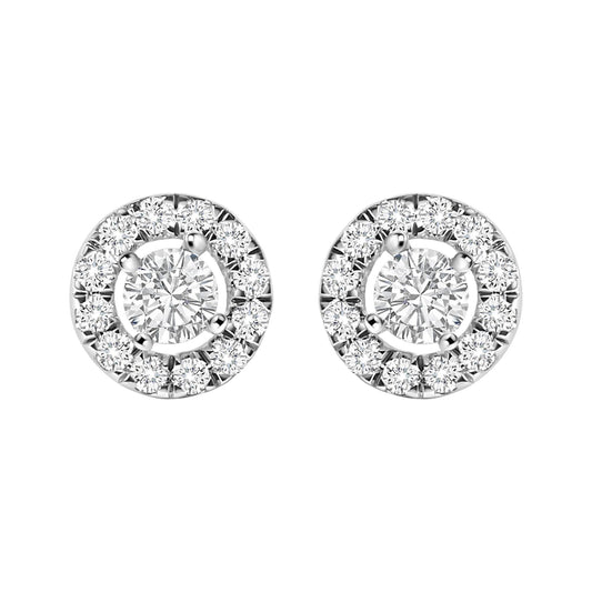 14K White Gold 3/4 Cttw Lab-Grown Diamond Floating Halo Stud Earring (F-G Color, VS1-VS2 Clarity)