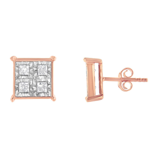 Rose Gold Plated Sterling Silver Diamond Composite Stud Earrings (3/4 cttw, J-K Color, I1-I2 Clarity)