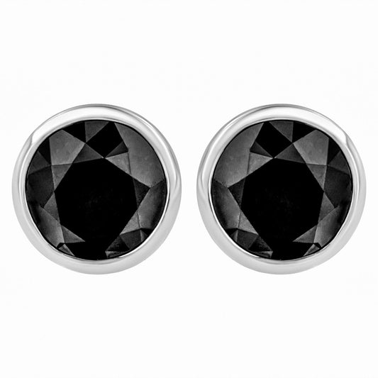 14K White Gold Round Brilliant-Cut Black Diamond Bezel-Set Stud Earrings with Screw Backs (Fancy Color-Enhanced, I2-I3 Clarity)
