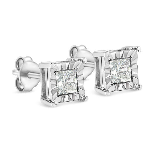 .925 Sterling Silver Miracle Set Princess-Cut Diamond Solitaire Stud Earrings (I-J Color, SI1-SI2 Clarity)