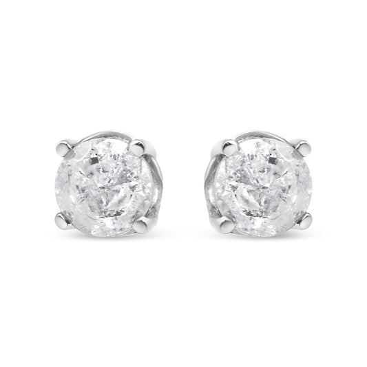 .925 Sterling Silver 1/2 Cttw Near Colorless Round Brilliant-Cut Diamond Miracle-Set Stud Earrings (H-I Color, I2-I3 Clarity)