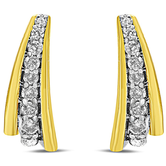 10K Yellow Gold Plated .925 Sterling Silver 0.50 Cttw Round Diamond Graduated Huggie Earrings (I-J Color, I2-I3 Clarity)