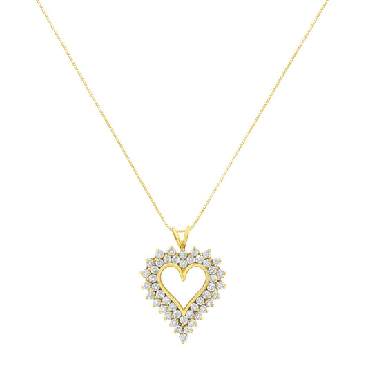 14K Yellow Gold .925 Sterling Silver 4 cttw Round-cut Diamond Cluster Heart Pendant Necklace (K-L Color, I1-I2 Clarity)
