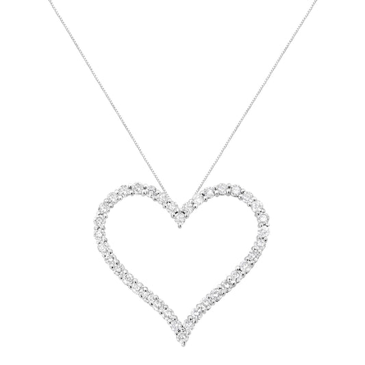 .925 Sterling Silver 3.0 cttw Round-Cut Diamond Open Heart Pendant Necklace (I-J Color, I2-I3 Clarity) - 18"