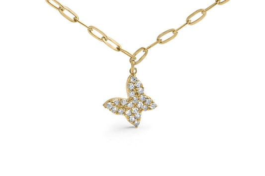 14KT Yellow Gold 1/2 Cttw Diamond Butterfly Station Paperclip Station Necklace (I-J Color, I1-I2 Clarity) - Adjustable 15"-17" Inches