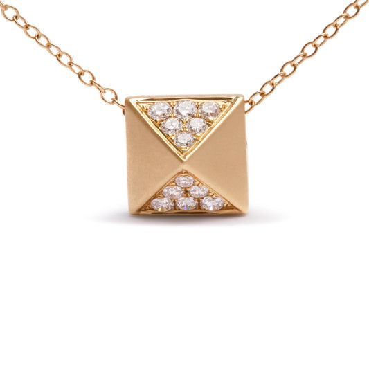 14K Yellow Gold 1/4 Cttw Diamond Matte Finished Pyramid Pendant Necklace (G-H Color, SI1-SI2 Clarity) - 18 Inches