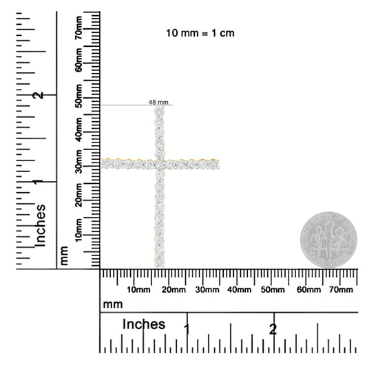 .925 Sterling Silver 3.0 Cttw Round Shape Diamond 1-1/2" Cross Pendant with Box Chain Necklace (J-K Color, I2-I3 Clarity) - 18"
