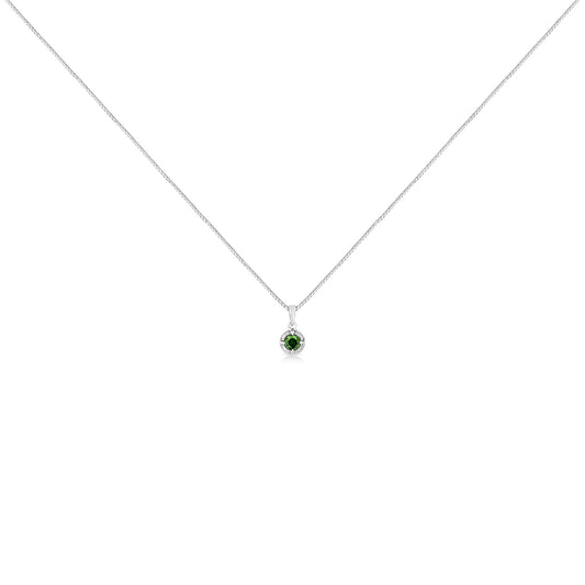 .925 Sterling Silver Created Green Emerald and White Sapphire Oval Shaped Pendant Necklace - 18" Inches
