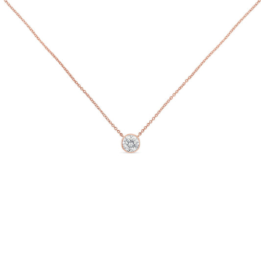 10K Rose Gold 1/5 Carat Round Brilliant-Cut Diamond Modern Bezel-Set Solitaire 16"-18" Pendant Necklace (H-I Color, SI2-I1 Clarity)