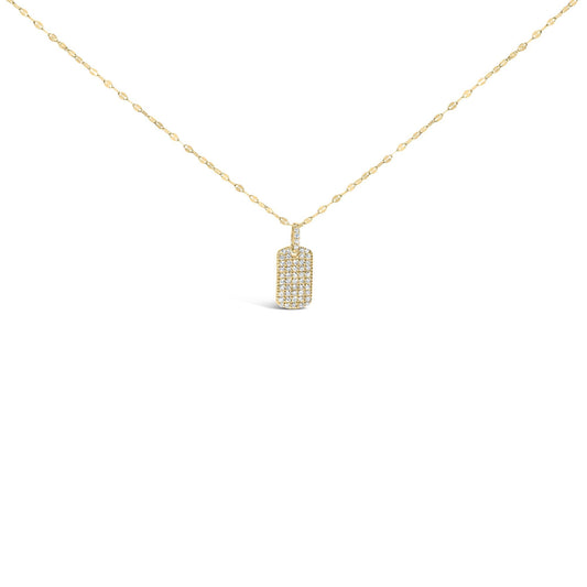18K Yellow Gold Plated.925 Sterling Silver 1/3 Cttw Diamond Studded Dog Tag 18" Pendant Necklace (I-J Color, I2-I3 Clarity)