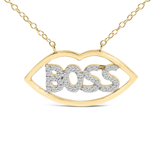 14K Yellow Gold Plated Silver 1/4 Cttw Diamond "Boss" Pendant Necklace - 18 Inch