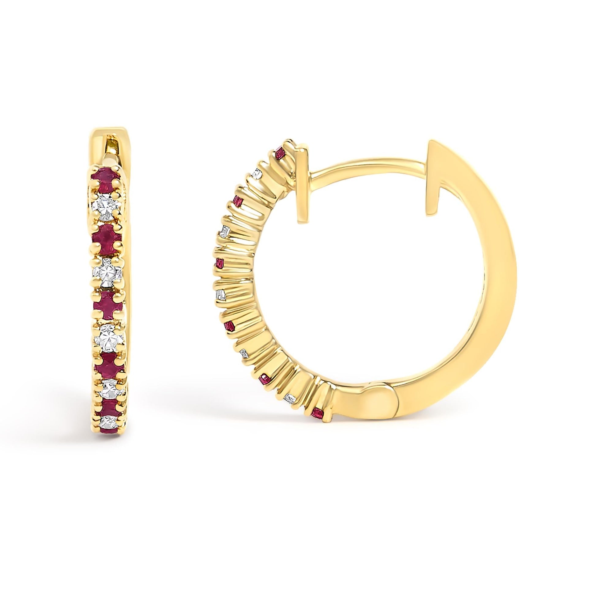 10K Gold Alternating Diamond and Red Ruby Huggy Hoop Earrings