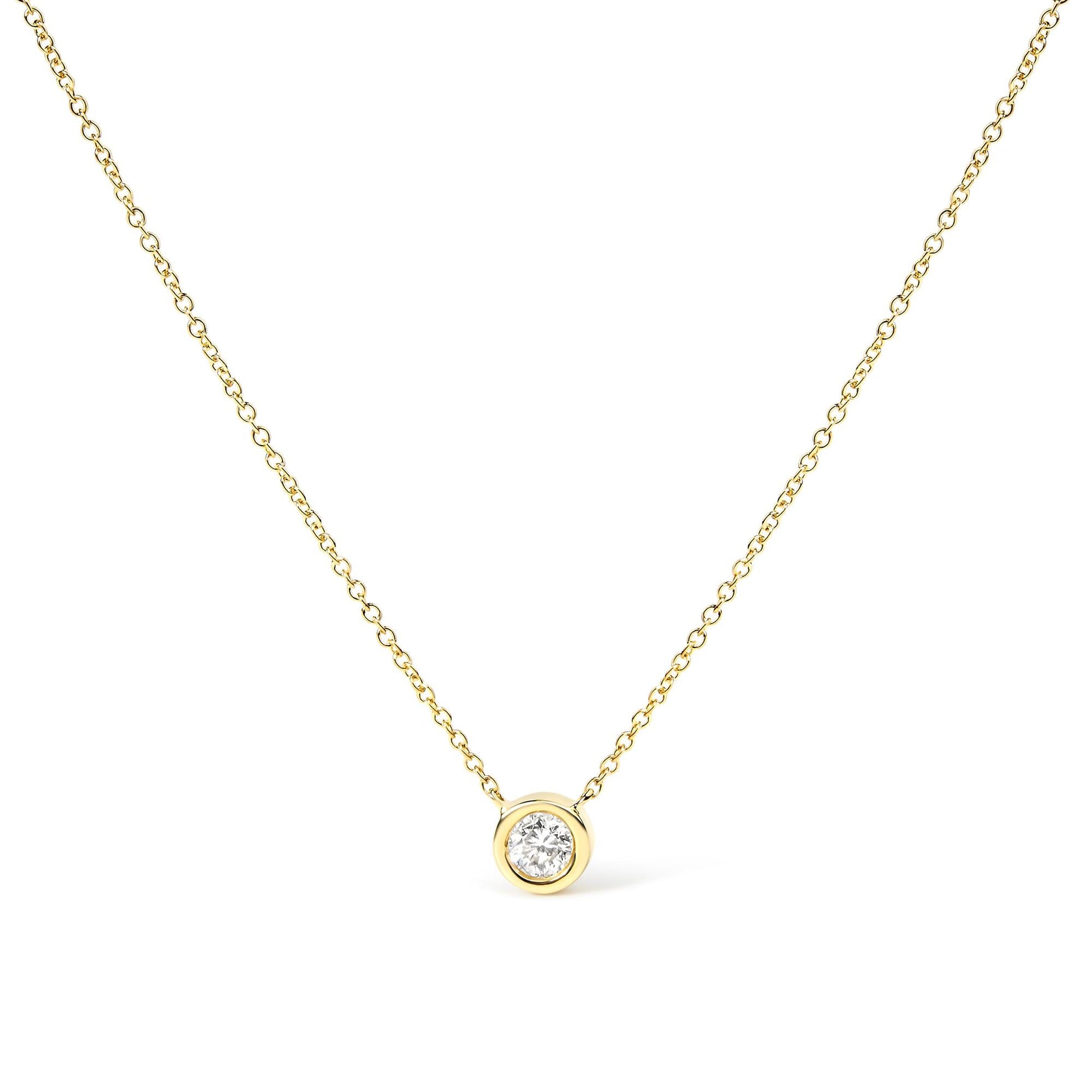 10K Gold Round Brilliant-Cut Diamond Modern Bezel-Set Solitaire 16"-18" Pendant Necklace (H-I Color, SI2-I1 Clarity)