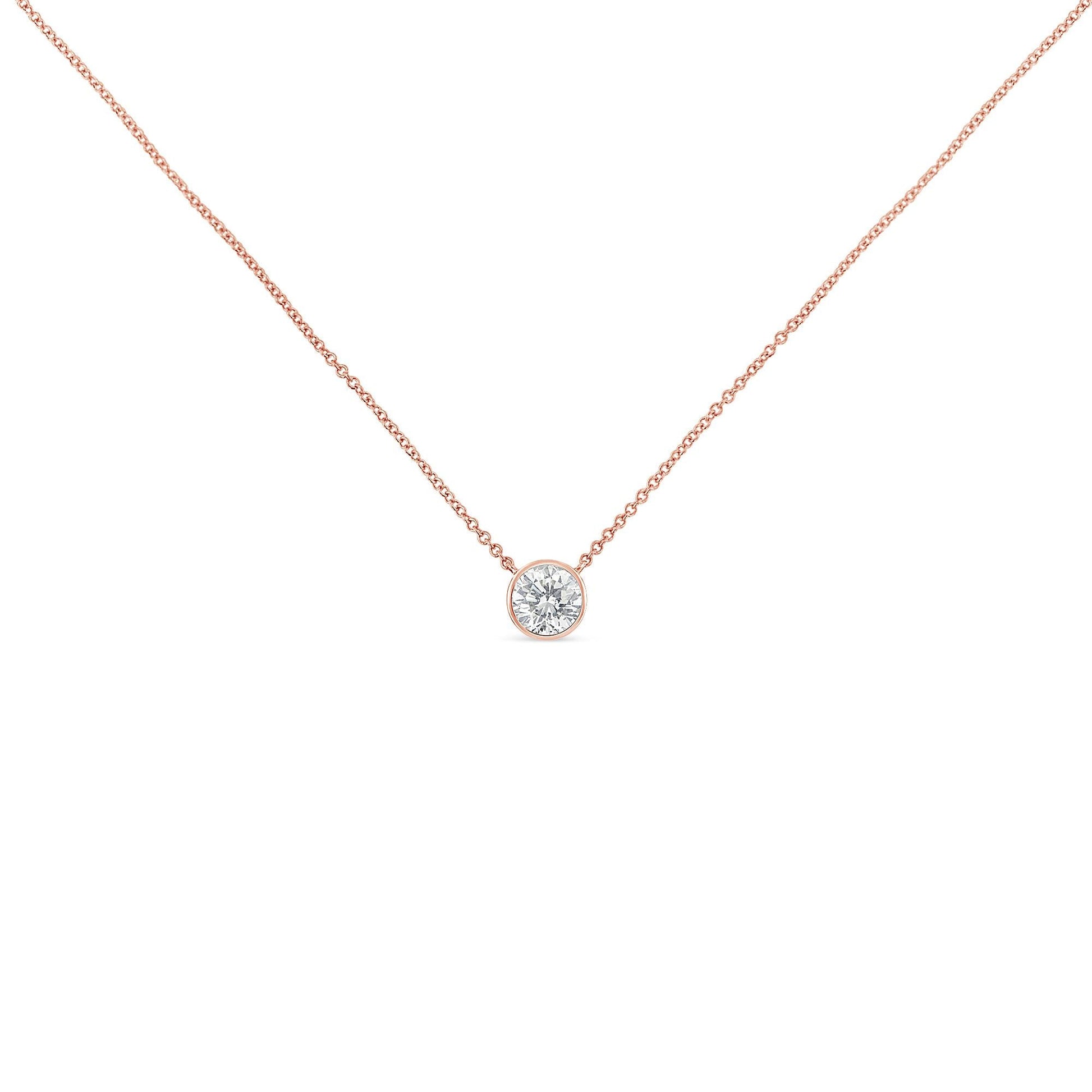 10K Rose Gold 1/5 Carat Round Brilliant-Cut Diamond Modern Bezel-Set Solitaire 16"-18" Pendant Necklace (H-I Color, SI2-I1 Clarity)