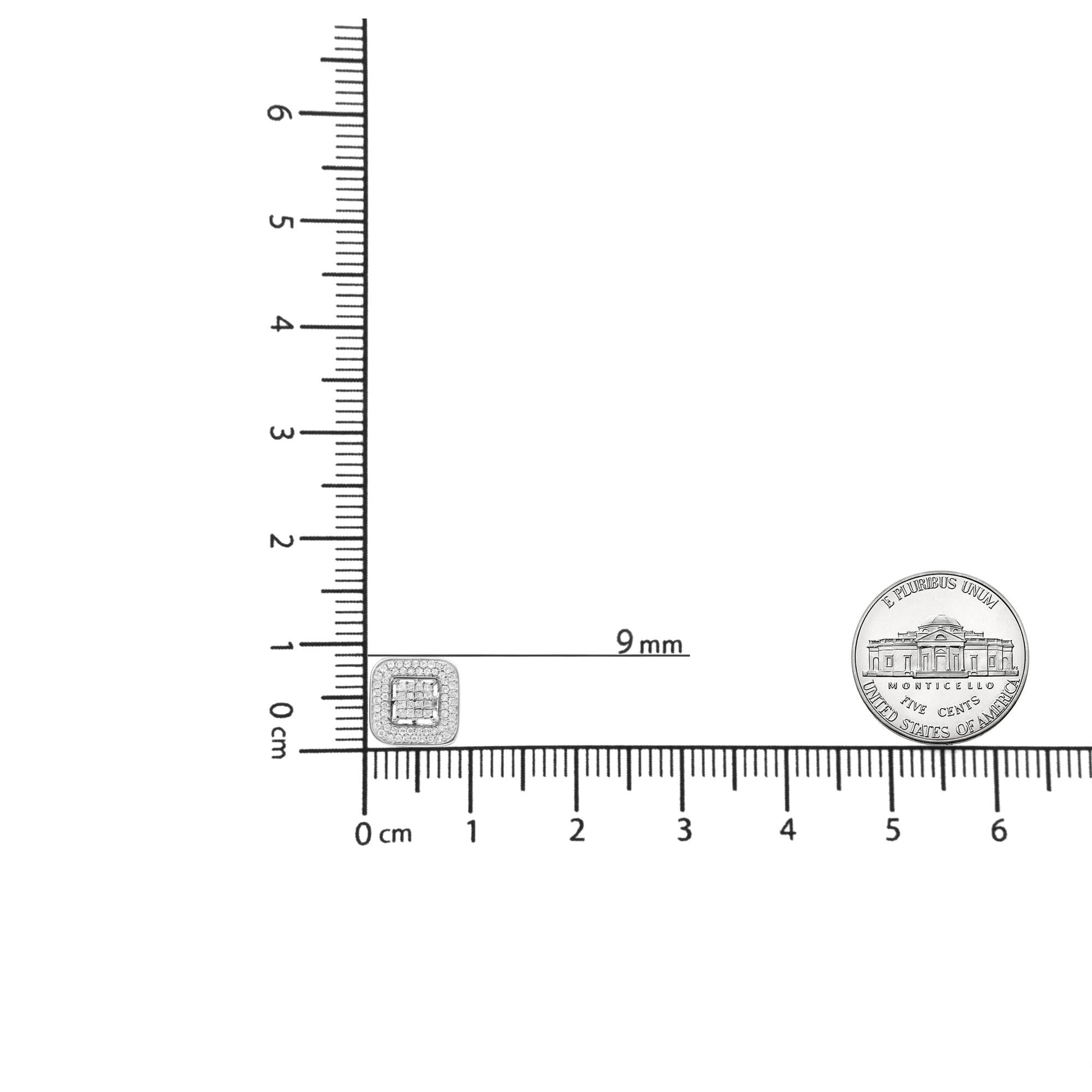 Discover the exquisite symmetry and breathtaking sparkle of these rhodium-plated 10K white gold stud earrings, where luxury meets timeless elegance. At the center of each earring, 16 masterfully set princess-cut diamonds converge to mimic a grand solitaire, their natural origin ensuring a purity of form that catches the light with every turn. Encircled by a delicate halo of brilliant round diamonds, a whisper-thin open space introduces an alluring depth that makes the central mosaic pop with an arresting clarity and color graded H-I, SI1-SI2. These studs not only accessorize an outfit but elevate it, promising to bring a touch of sophistication to any occasion and a lifetime of admiring glances. Earring secure with screw backs.