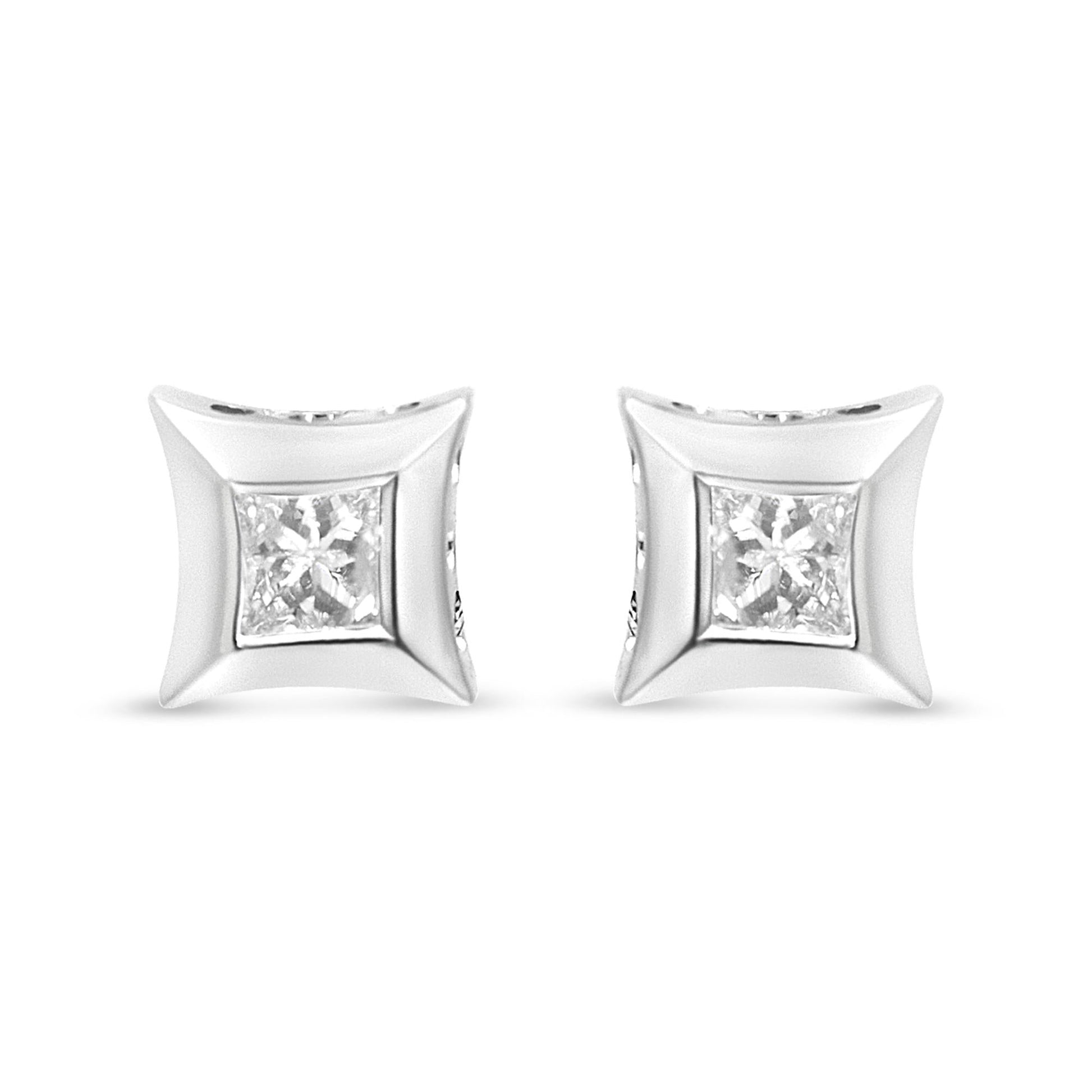 10K White Gold 1/3 Cttw Invisible Set Style Princess-Cut Diamond Stud Earrings (H-I Color, SI2-I1 Clarity)