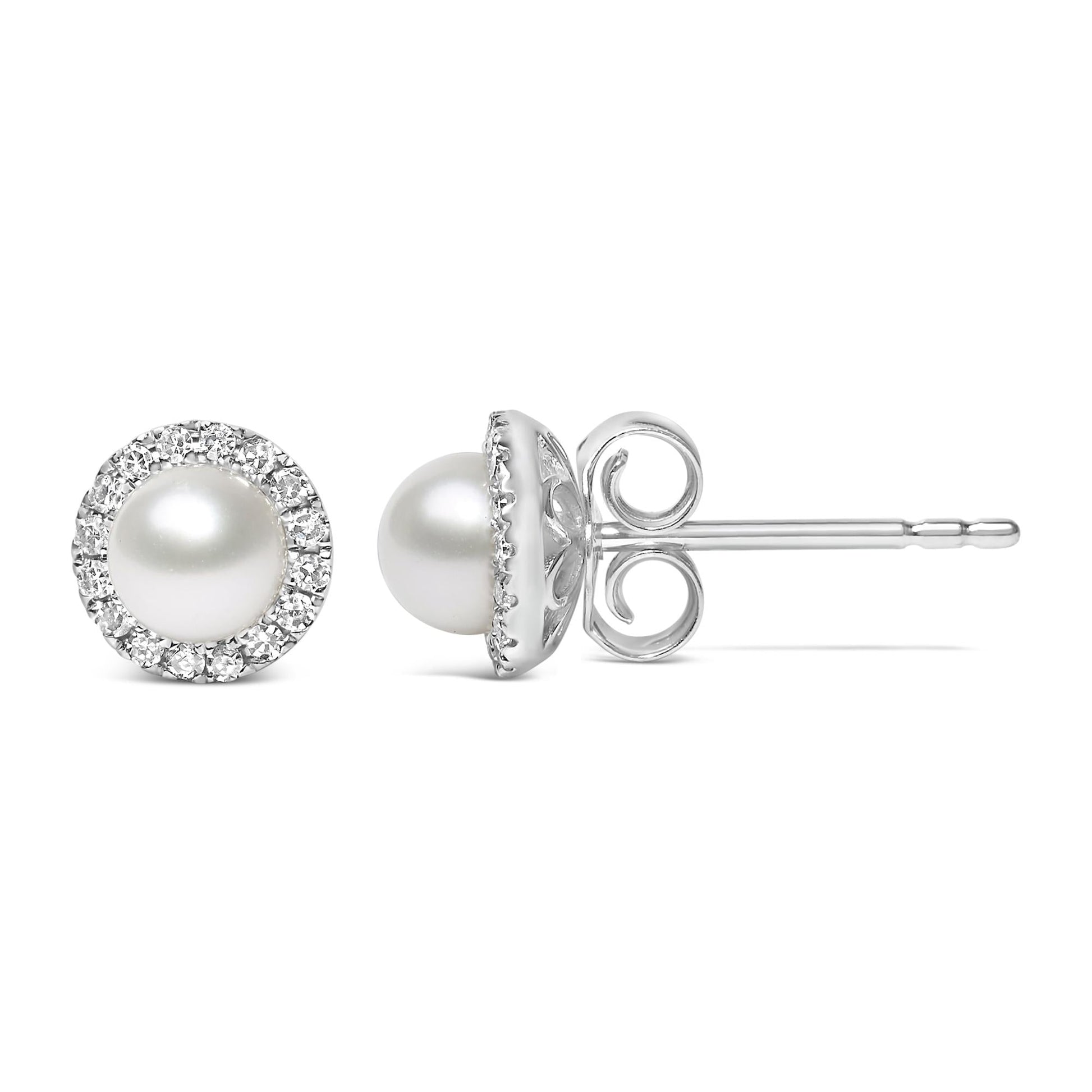 10K White Gold 4.5mm Cultured Freshwater Pearl and 1/7 Cttw Diamond Halo Stud Earring (I-J Color, I1-I2 Clarity)