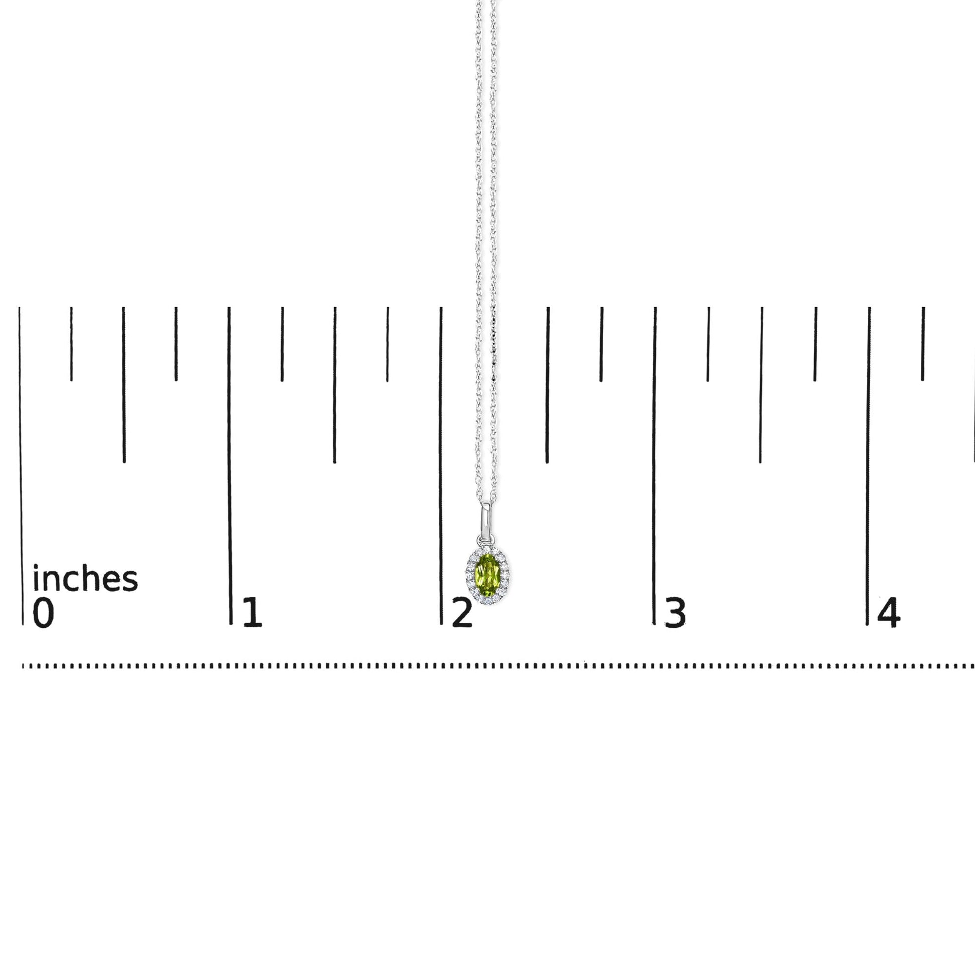 10K White Gold 5x3mm Gemstone and Diamond Accent Halo Oval Shape 18" Pendant Necklace (I-J Color, I1-I2 Clarity)