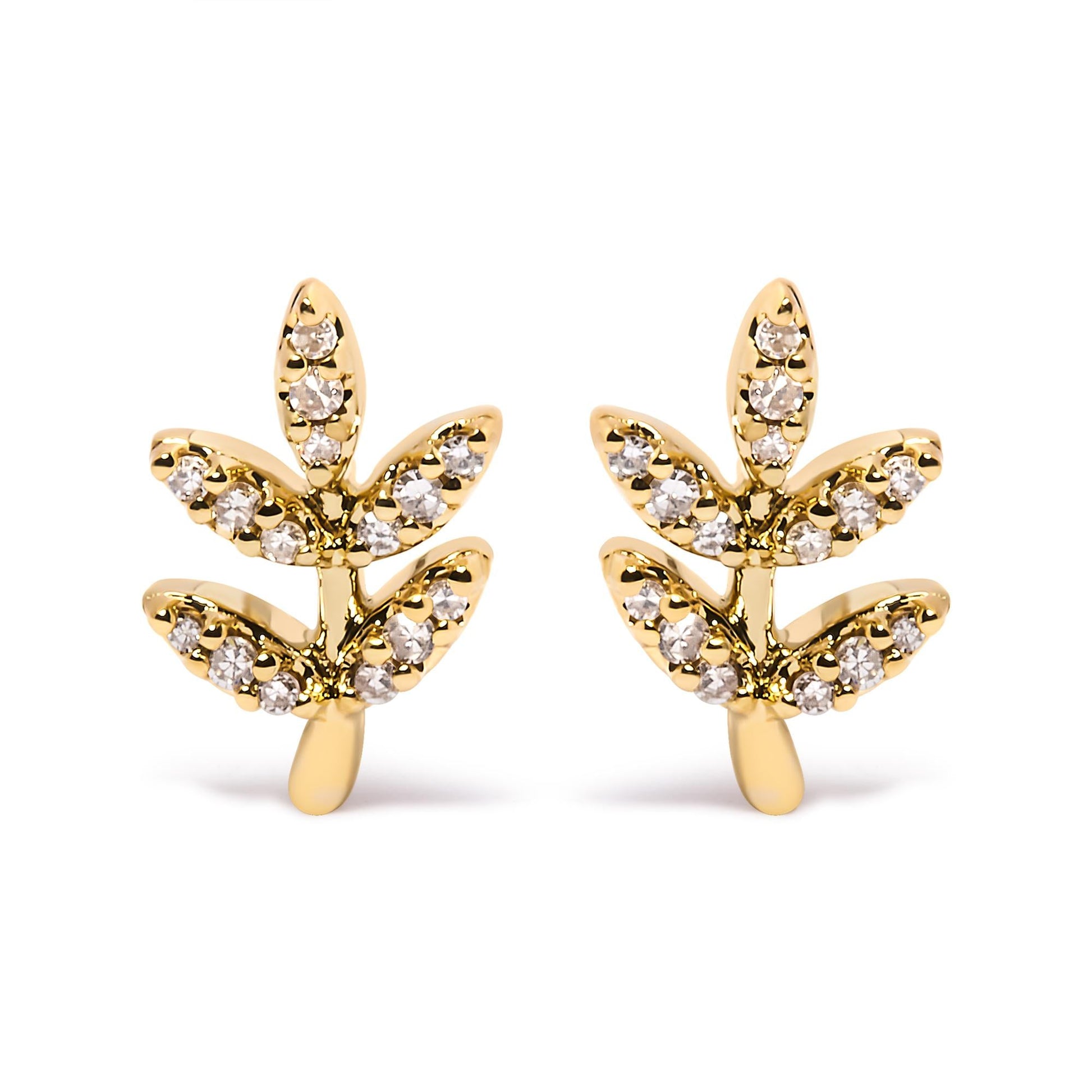 10K Yellow Gold 1/10 Cttw Diamond Accented Leaf and Branch Stud Earrings (H-I Color, I1-I2 Clarity)