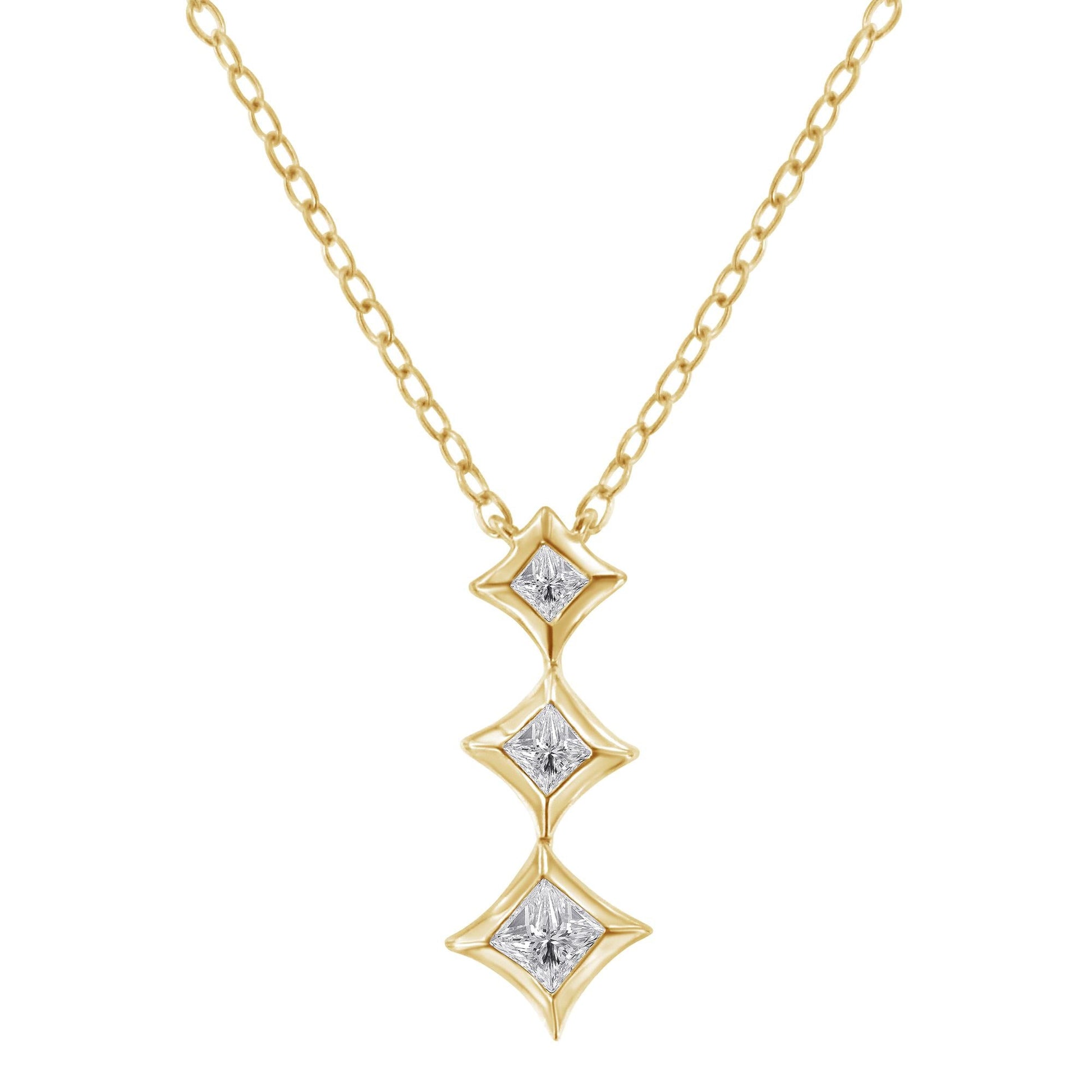 10K Gold 1/5 Cttw Princess Cut Diamond 3 Stone Drop 18" Pendant Necklace (H-I Color, SI2-I1 Clarity)