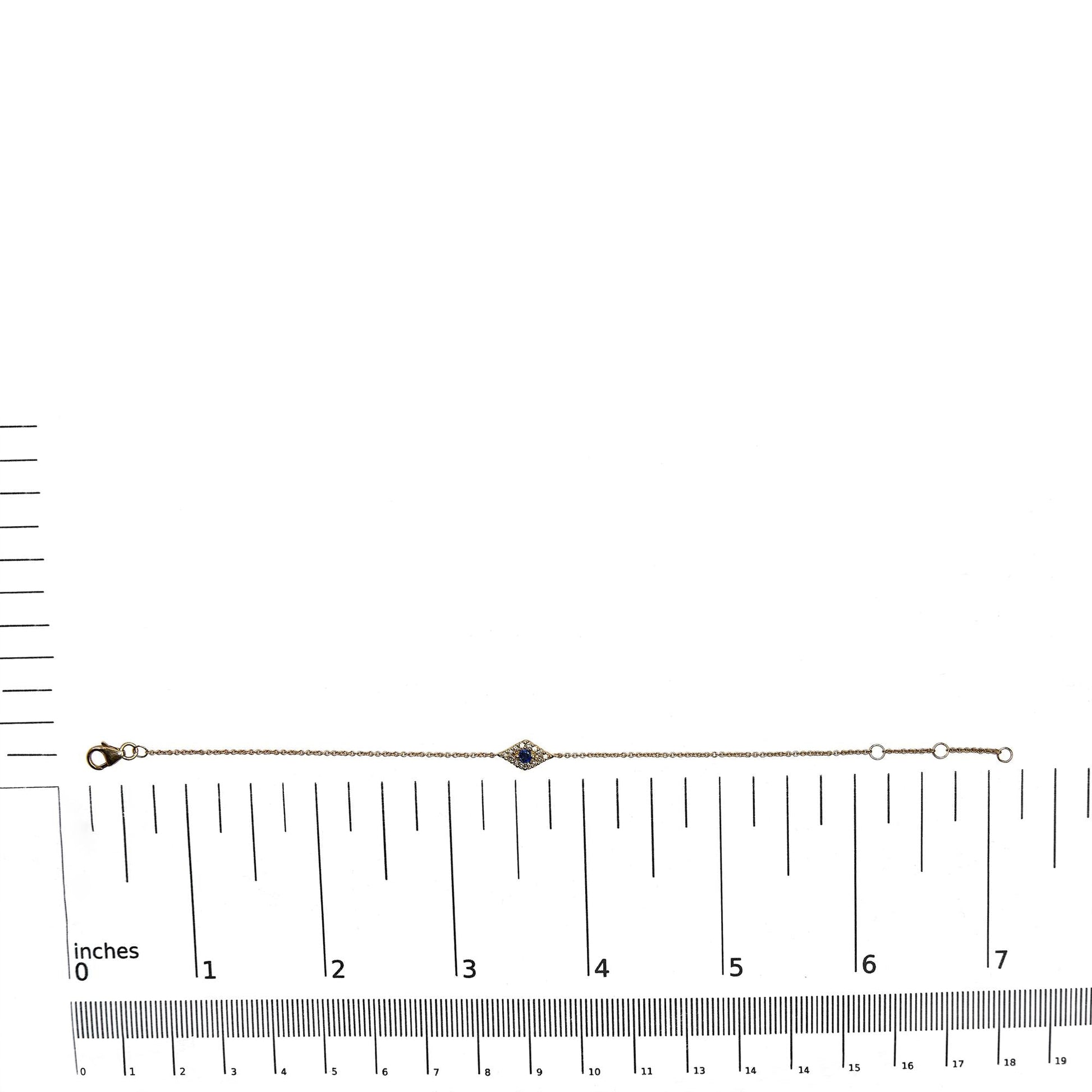 10K Yellow Gold Blue Sapphire and Diamond Accent Evil Eye Station Link Bracelet (H-I Color, I1-I2 Clarity) - Size 7"