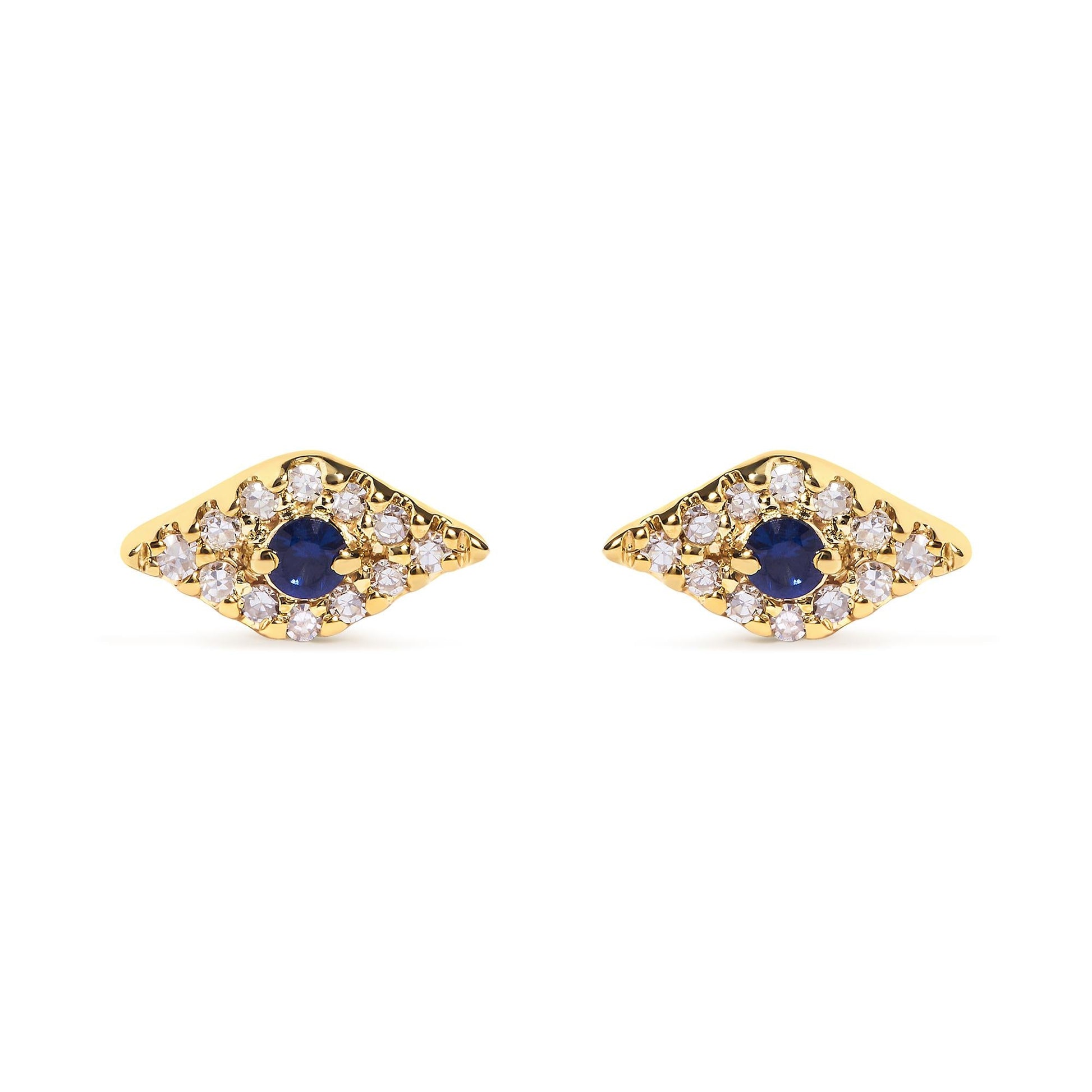10K Yellow Gold Blue Sapphire and Diamond Accent Evil Eye Stud Earring (H-I Color, I1-I2 Clarity)