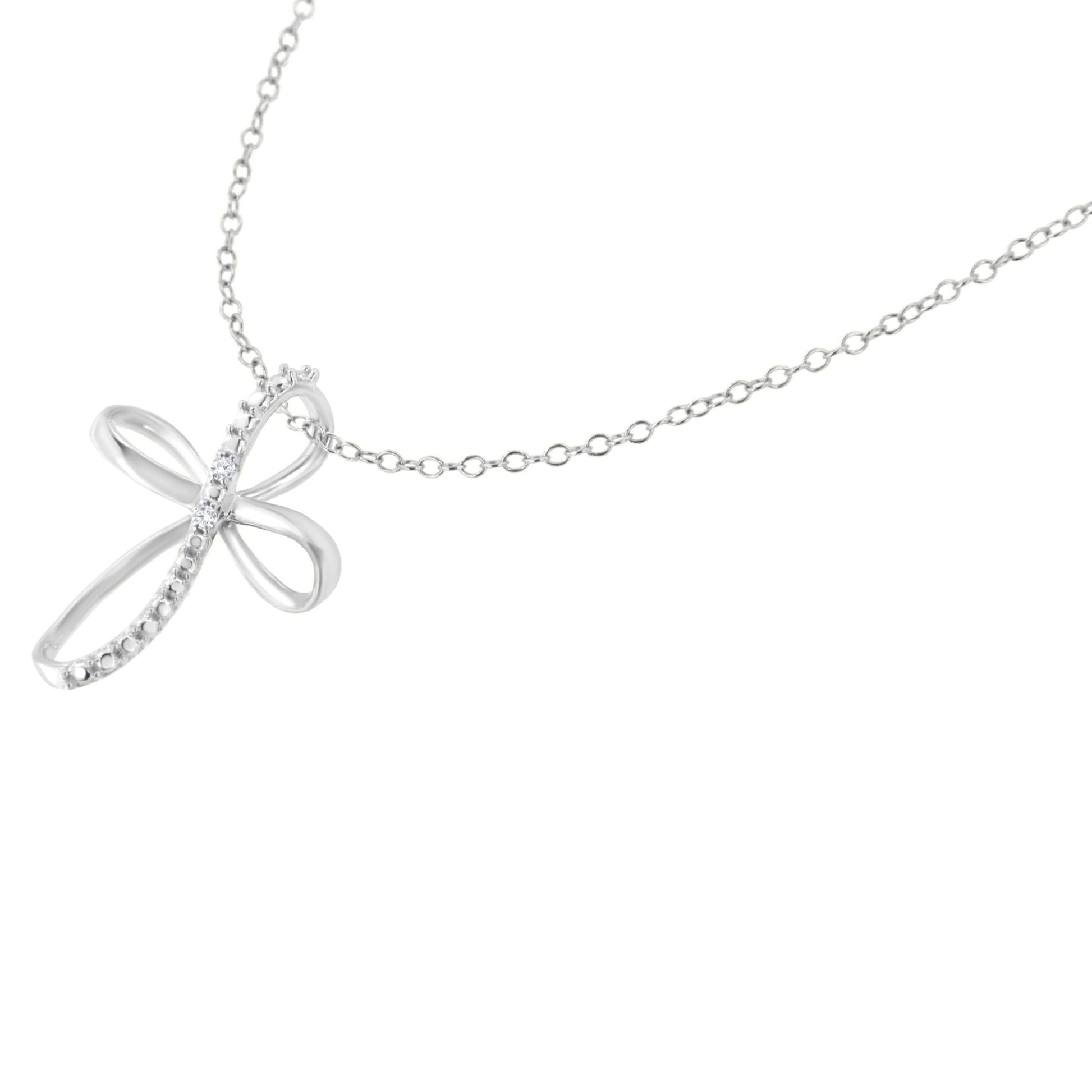 .925 Sterling Silver Diamond Accent Cross Ribbon 18" Pendant Necklace (I-J Color, I2-I3 Clarity)