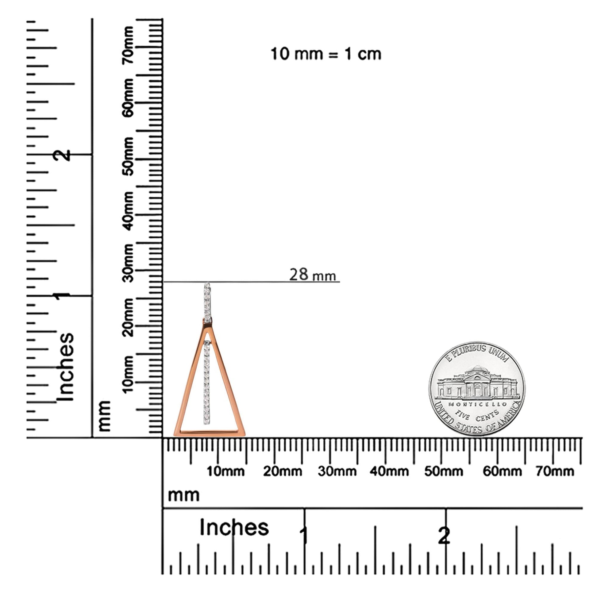 Discover the serene elegance of this dual-toned 14K rose and white gold pendant necklace, where art meets allure in a symphony of precious metals. The piece features an exquisitely crafted open triangular silhouette in rose gold, within which dances a vertical bar richly adorned with natural diamonds, boasting G-H color and SI1-SI2 clarity. This sparkling bar moves freely, mimicking the delicate sway of a windchime, catching light and casting spellbinding shadows that echo your innate sophistication. Suspended from an 18-inch rhodium-plated white gold rolo chain, which promises added brilliance and durability, this necklace ensures a secure embrace with a spring ring clasp. Perfect for those who cherish understated luxury and dynamic designs, it promises to be not just a jewel but a centerpiece of conversation and admiration.
