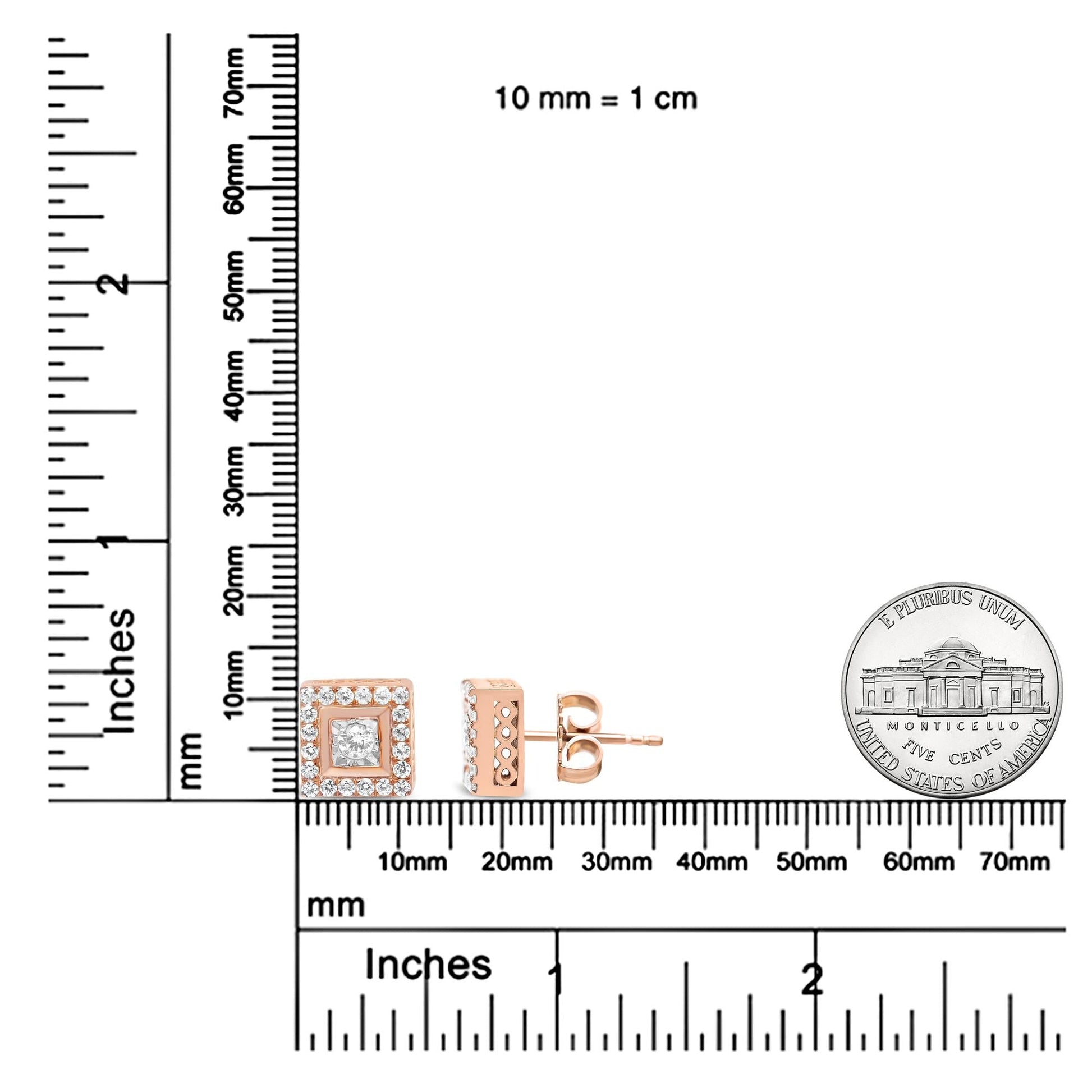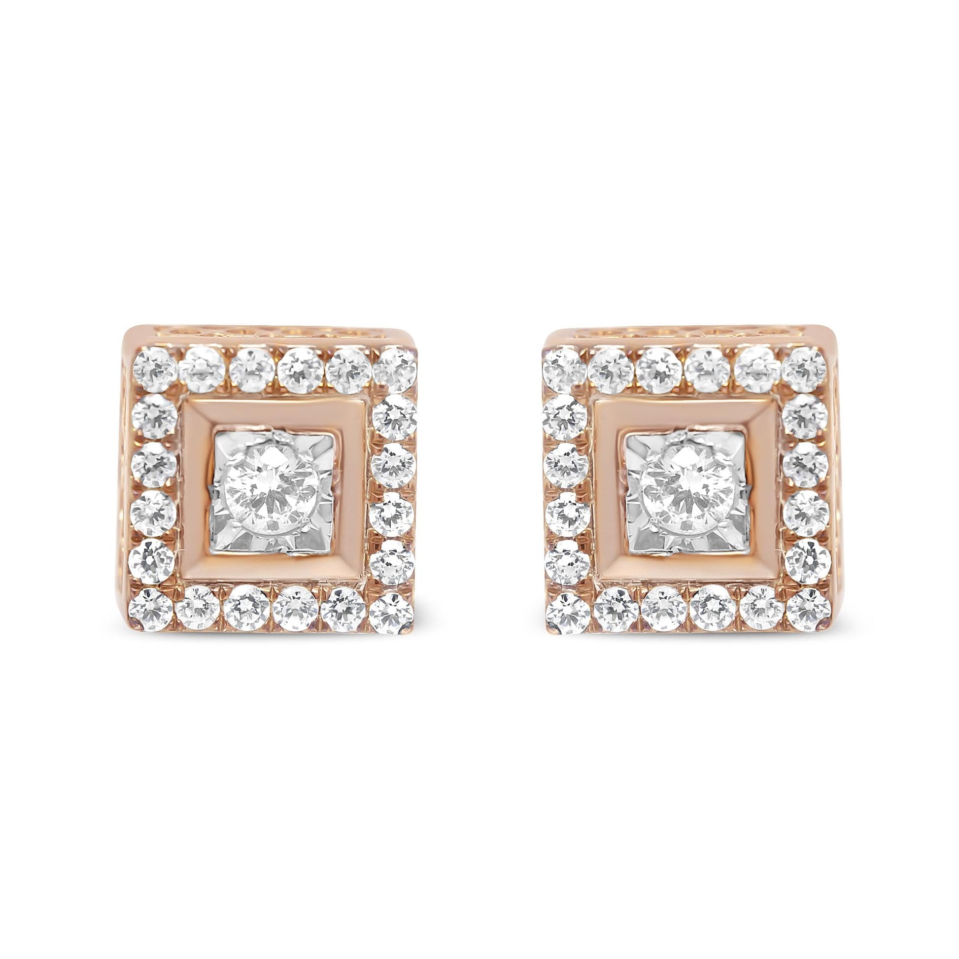 14K Rose Gold Plated .925 Sterling Silver 1/2 Cttw Diamond Halo Square-Shaped Frame Stud Earring (I-J Color, I3 Clarity)