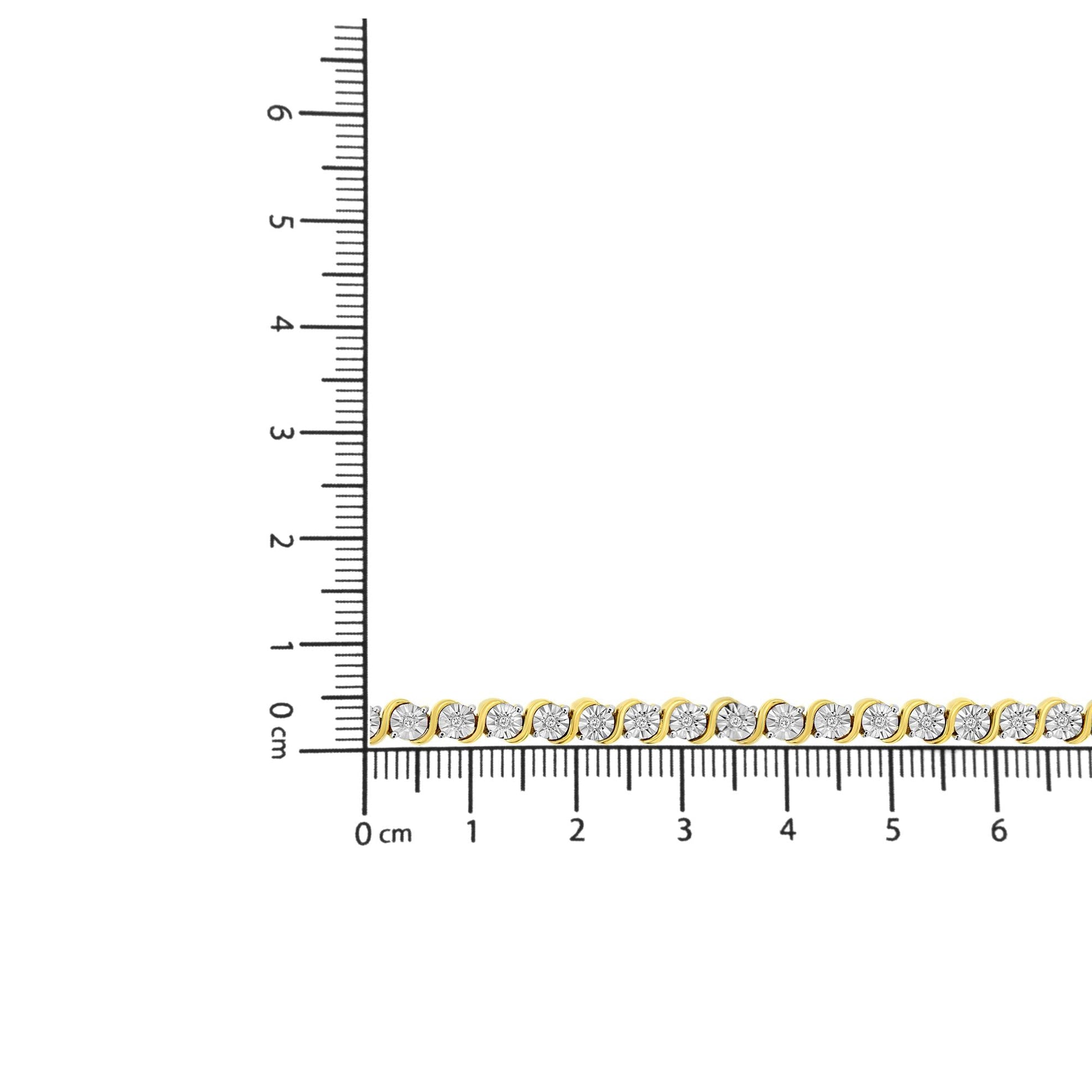 Elegant and timeless, this gorgeous 92.5% sterling silver tennis bracelet features 0.25 carat total weight of natural round brilliant cut white diamonds with 37 individual stones in all. The tennis bracelet has each diamond set into a faceted bezel style miracle plate setting sandwiched between faux bypass style waves of silver. The unique miracle-plate settings center each genuine diamond in a mirror-finish, high-polish frame, giving the illusion of a much larger stone. The 7†long bracelet culminates in a secure box with tongue and safety clasp. The bracelet comes in your choice of rhodium or 14 karat yellow or rose gold plated sterling silver. Whether worn for daytime glamour or evening sparkle, this classic tennis bracelet is gorgeously versatile. It’s a timeless treasure she’ll enjoy wearing every day.