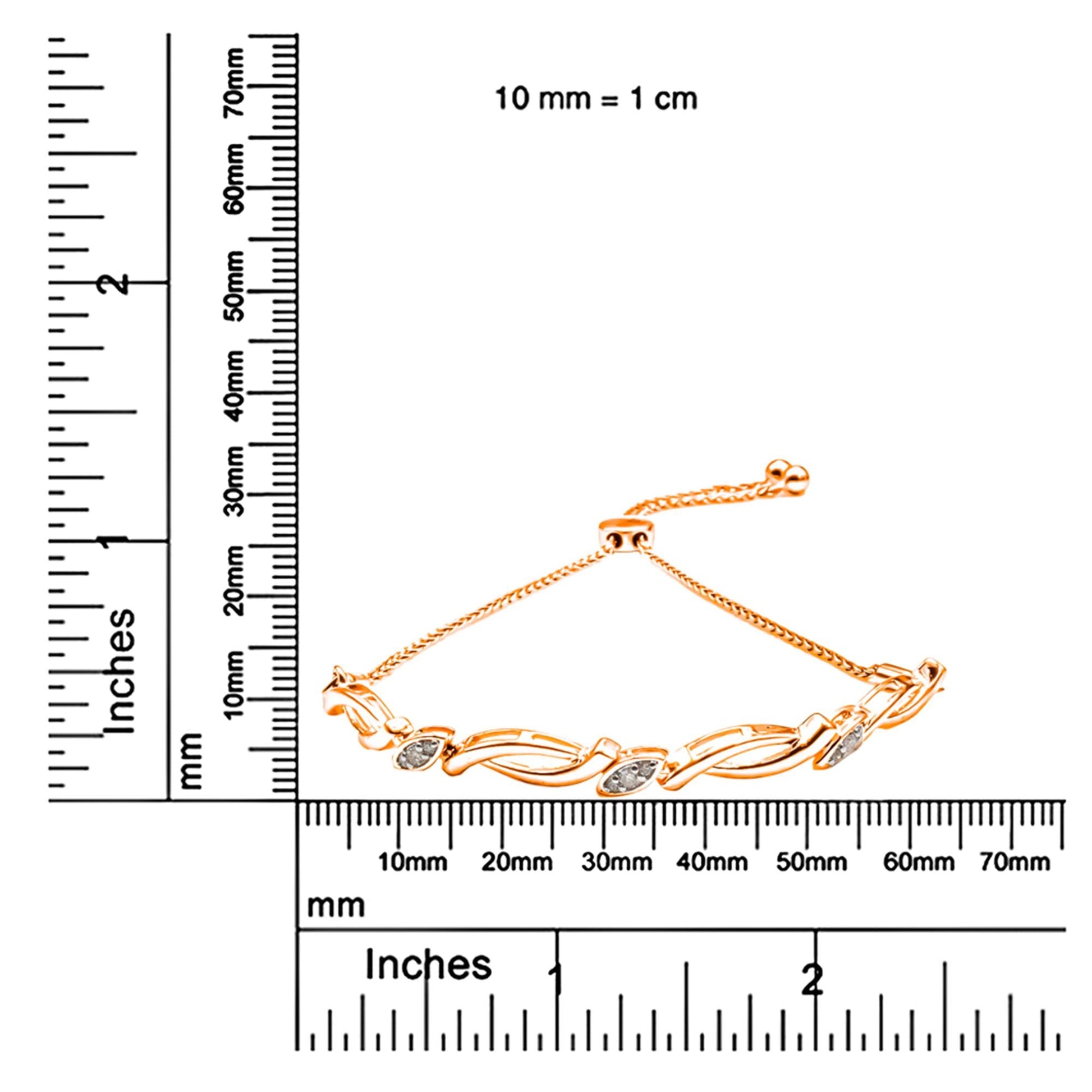 Trendy yet everlasting, this diamond accent bolo bracelet has a beautiful alternating design of infinity links and natural round-cut diamonds. The bracelet is crafted in genuine .925 sterling silver and plated with luxurious 14k rose gold. The bracelet features a secure slider and can adjust from 6" to 9" length for a custom fit.