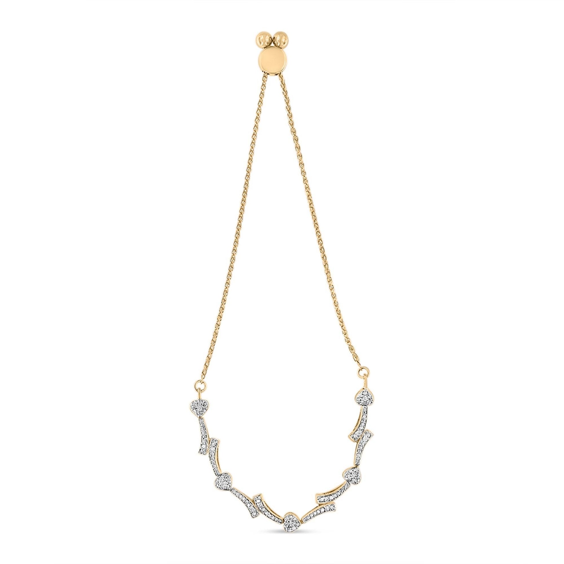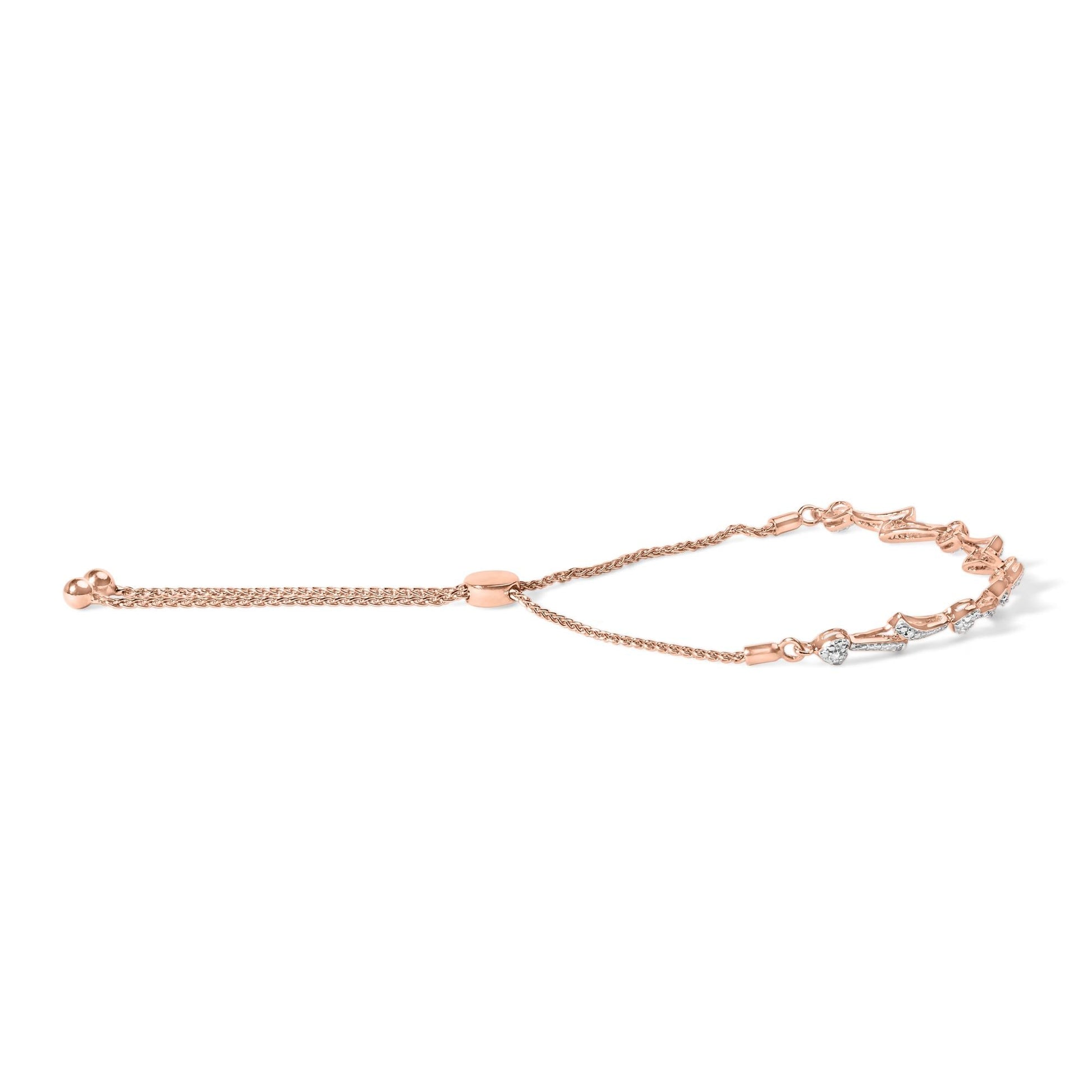 When it comes to jewelry, the rose gold trend is definitely not going anywhere anytime soon, and this dainty piece is a great pick to add to your closet. The 14K rose gold-plated Sterling Silver bracelet features 13 natural round-cut diamonds that have a 1/10 cttw in heart shape links. Set in a pavé setting, the stones alternate with alluring wave-like patterned link. It’s secured with an adjustable bolo clasp that can be adjusted for a custom fit between 6 to 9 inches making this a piece for almost all wrists.