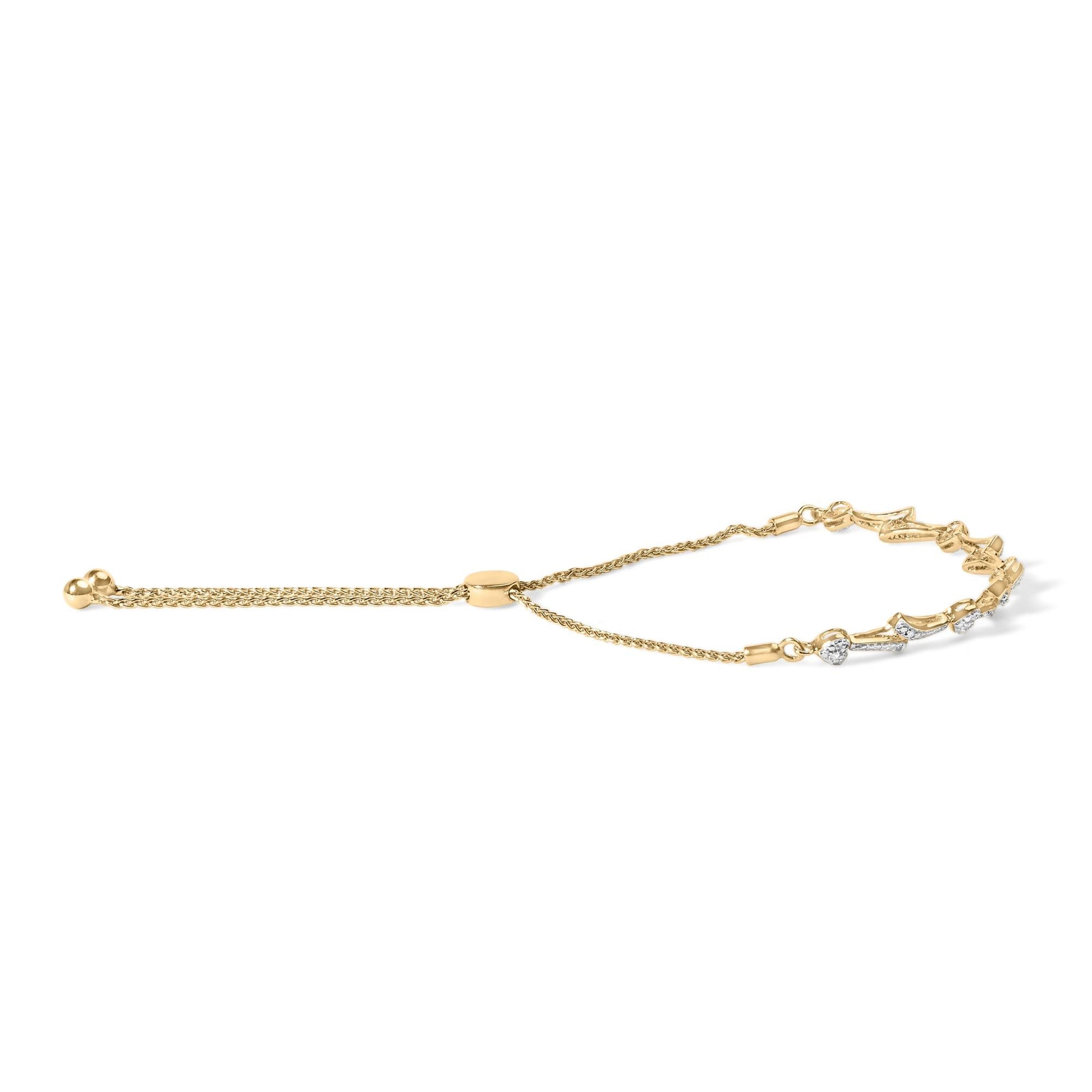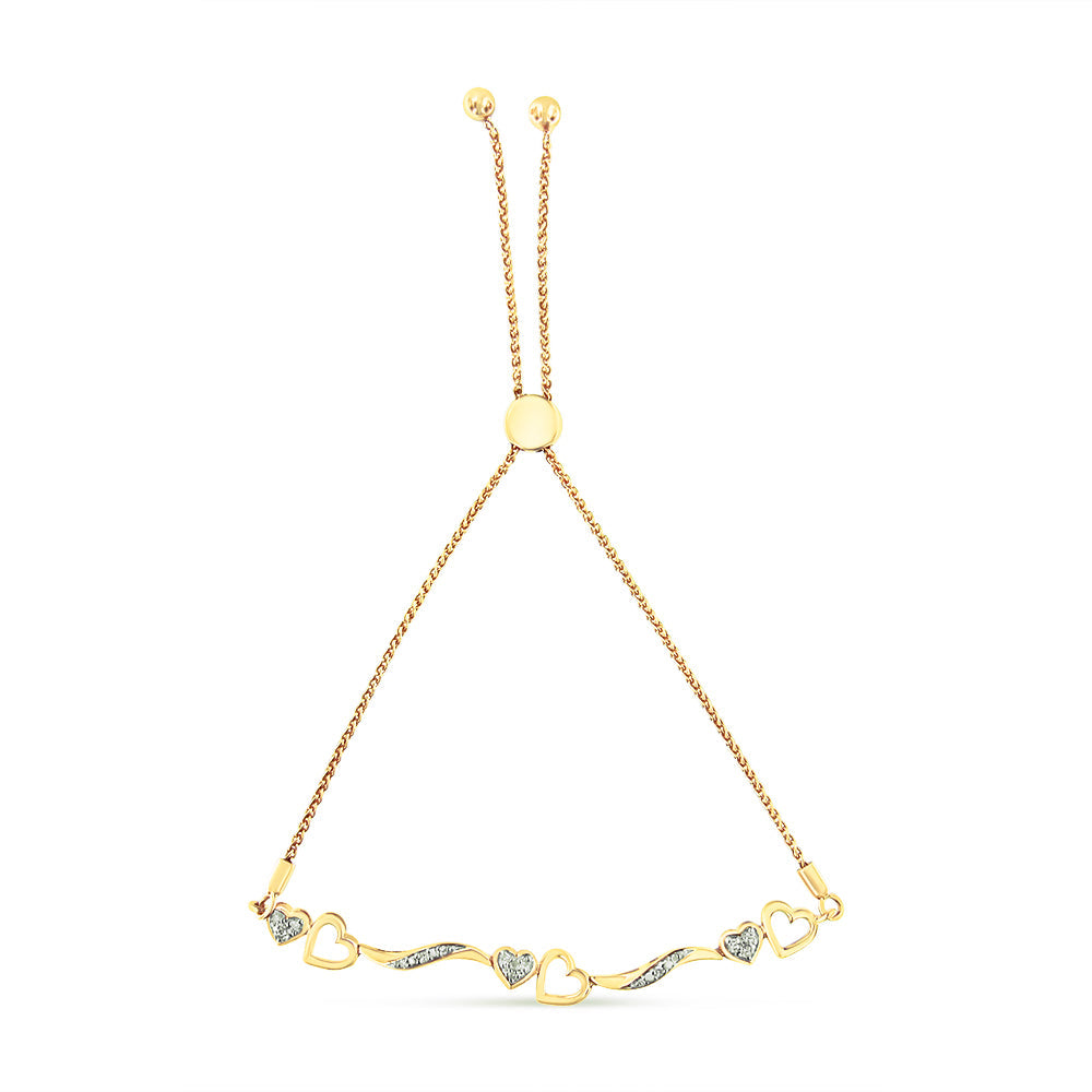 .925 Sterling Silver Diamond Accent Heart and Wave Link Bolo Bracelet (I-J Color, I2-I3 Clarity) - 6" to 9" Adjustable