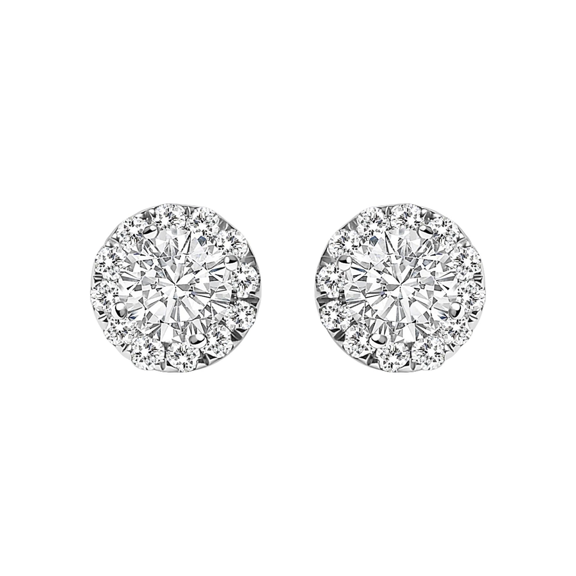 14K White Gold 1/2 Cttw Lab-Grown Diamond Halo Stud Earring (F-G Color, VS1-VS2 Clarity)