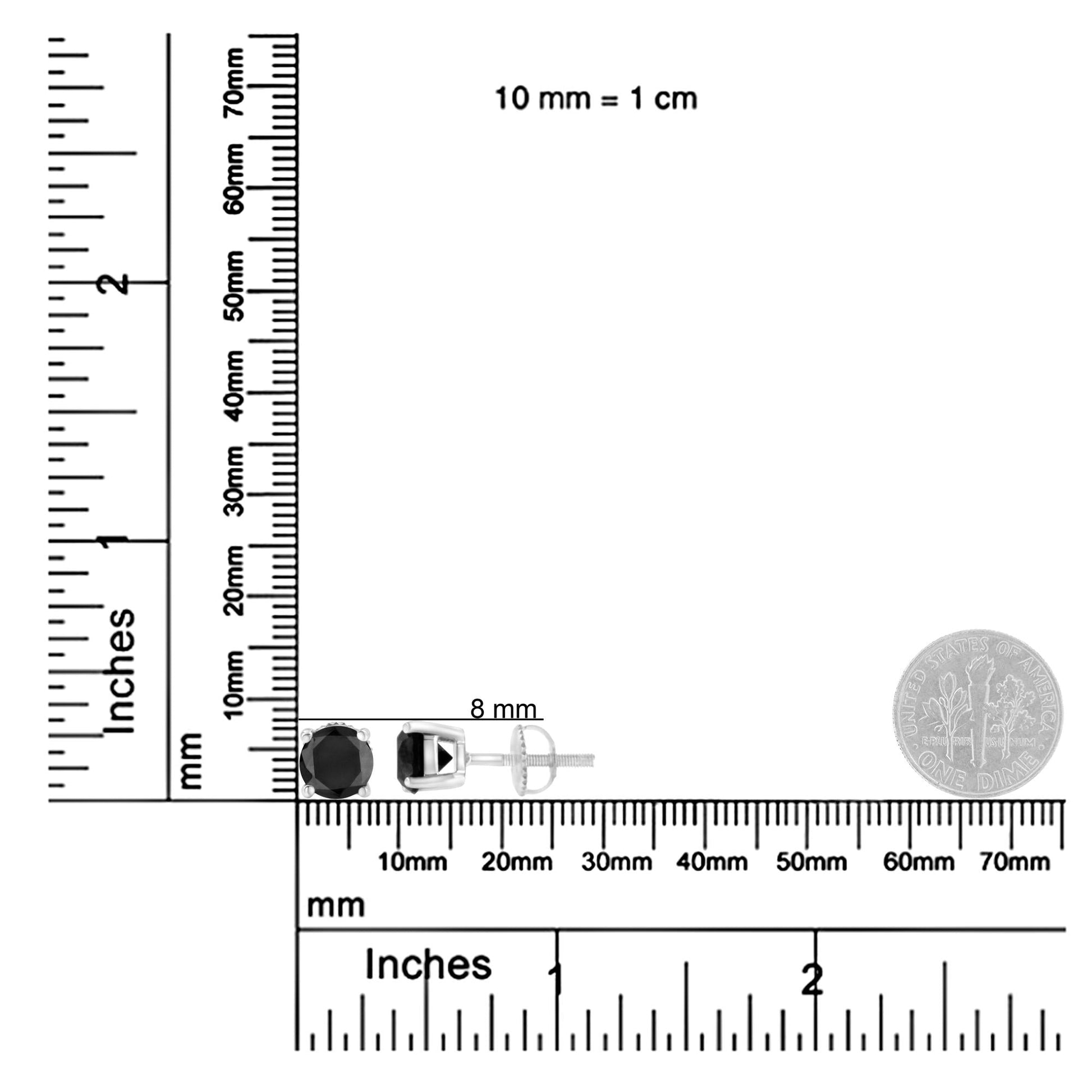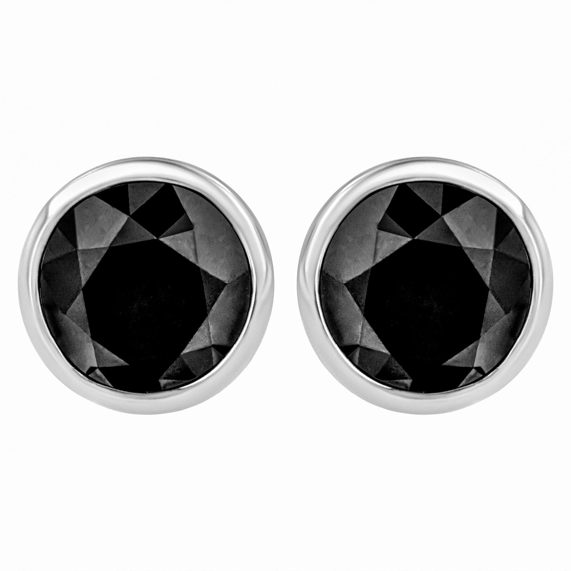 14K White Gold Round Brilliant-Cut Black Diamond Bezel-Set Stud Earrings with Screw Backs (Fancy Color-Enhanced, I2-I3 Clarity)