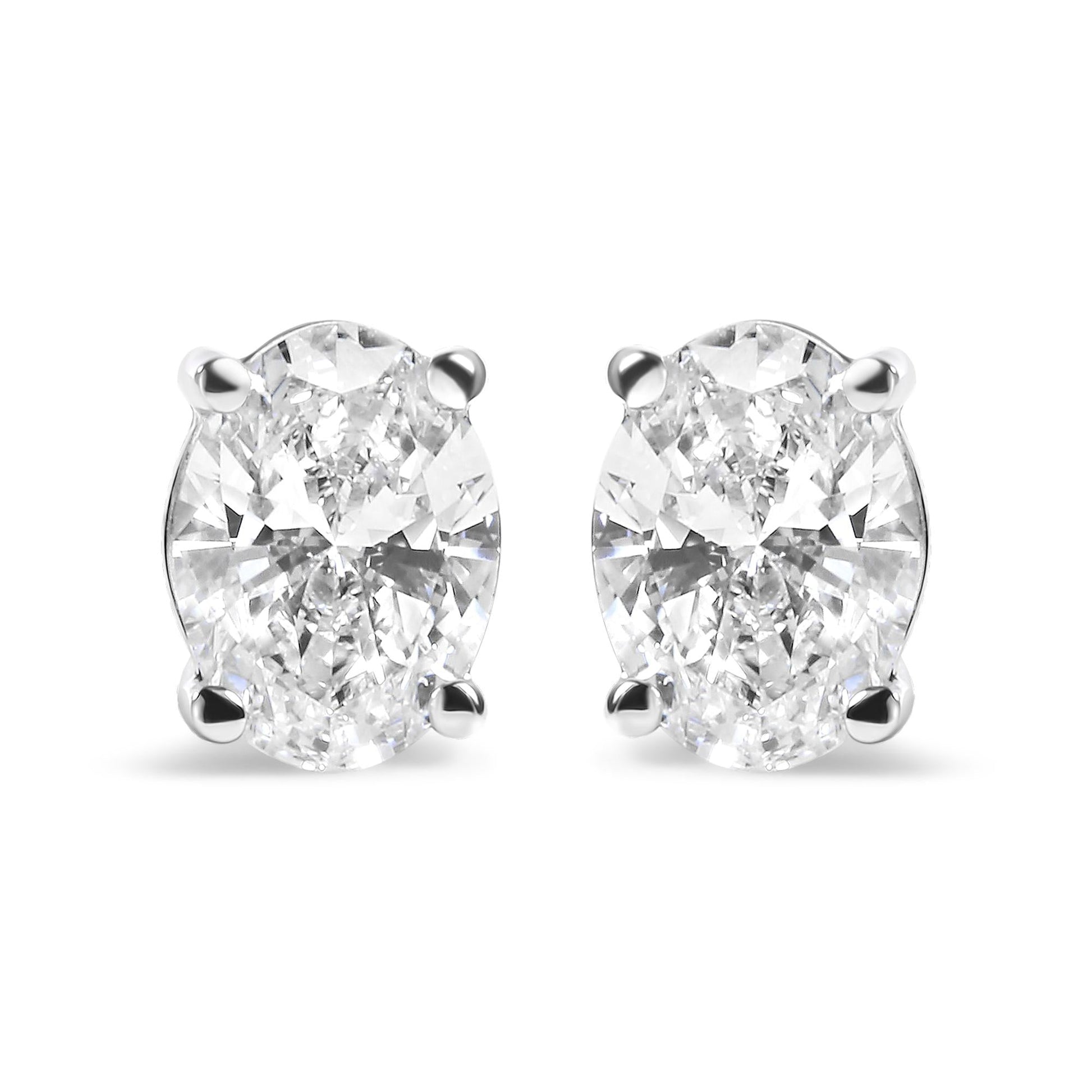 14K White Gold Prong Set Lab Grown Oval Diamond Solitaire Stud Earring (F-G Color, VS1-VS2 Clarity)