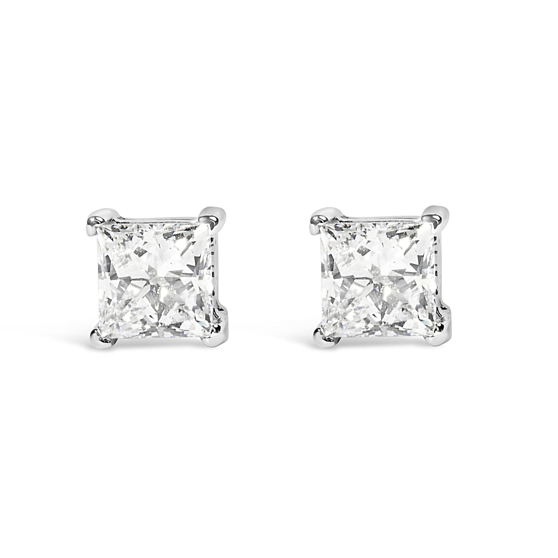 14K White Gold Princess Cut Lab-Grown Diamond Solitaire Stud Earrings (F-G Color, VS2-SI1 Clarity)