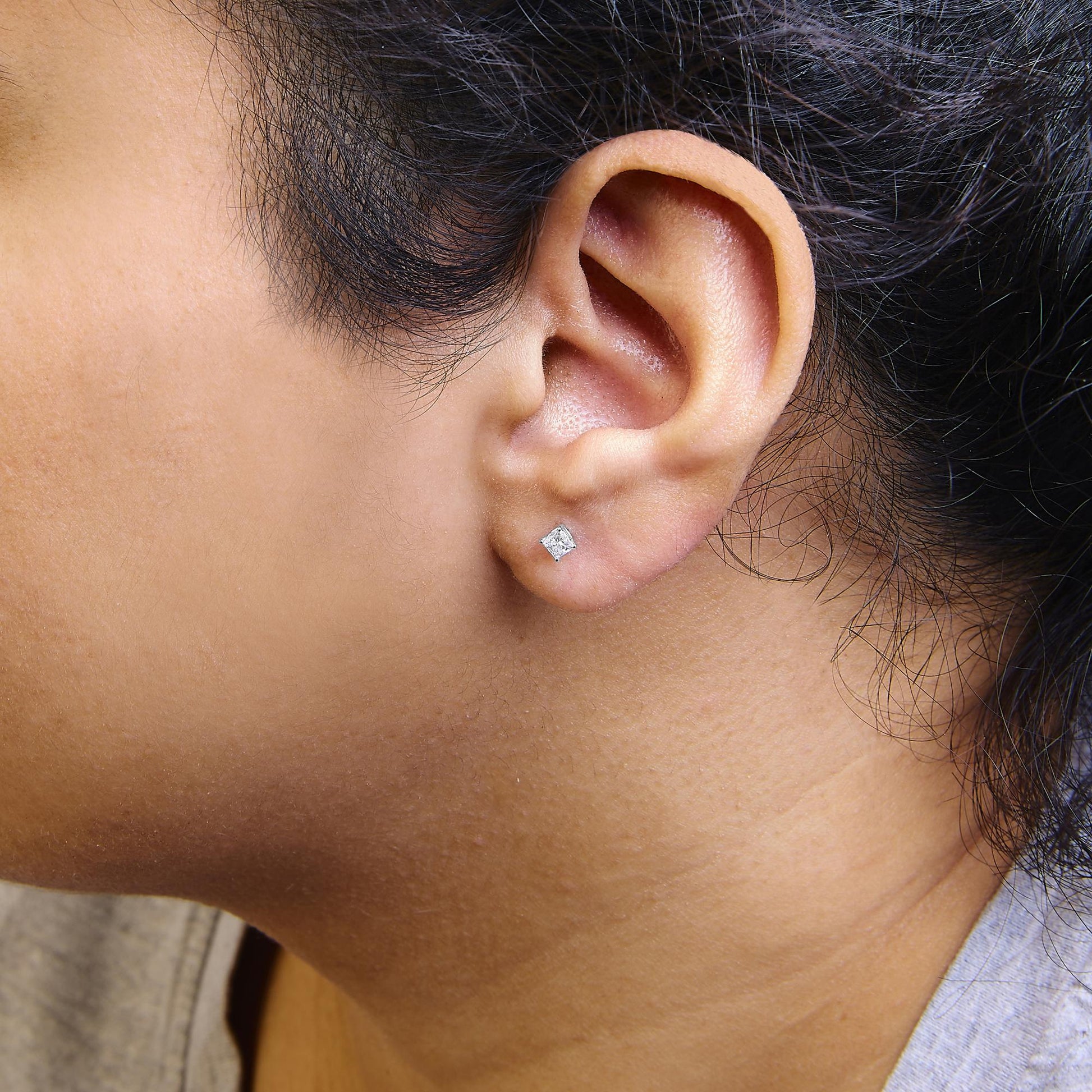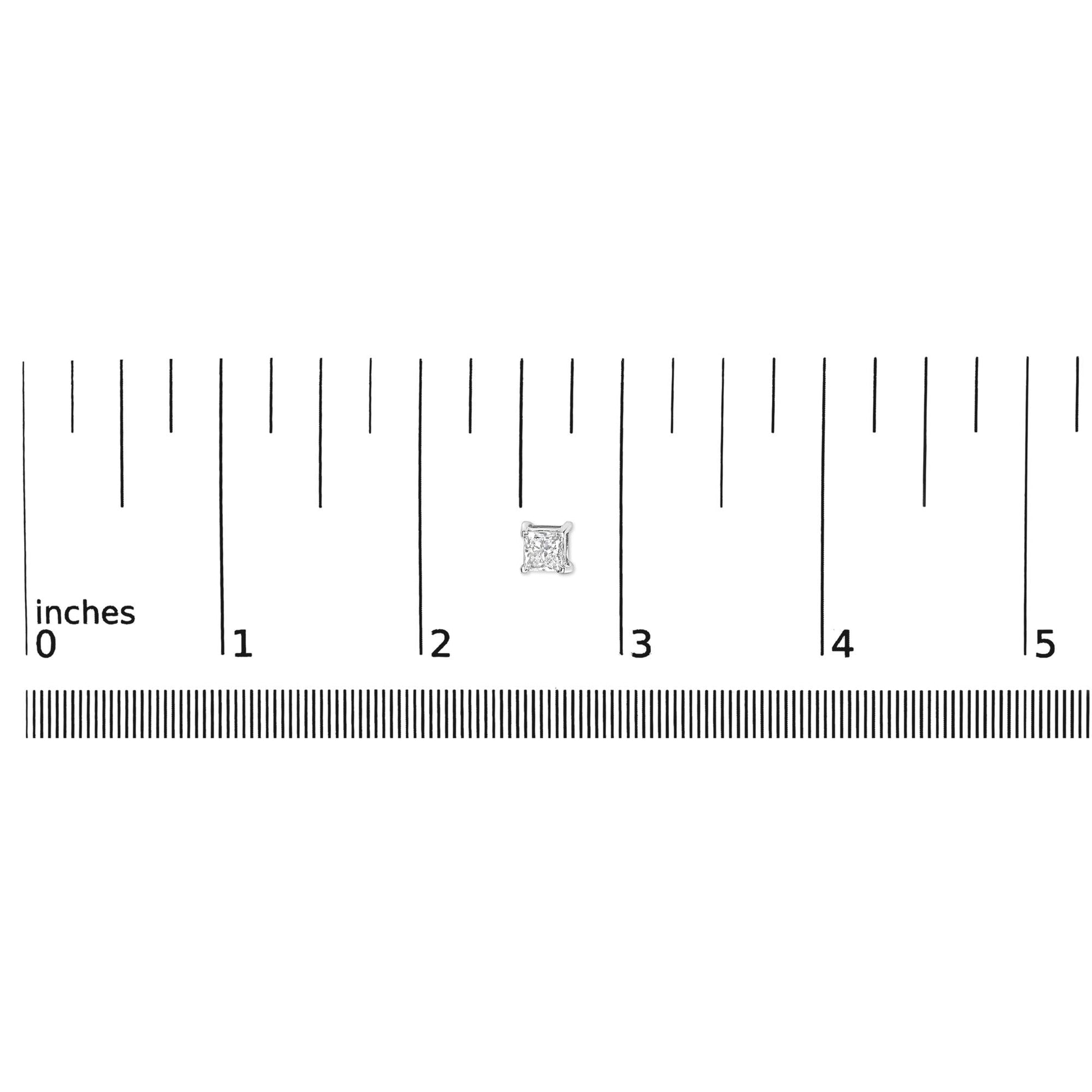 Embrace timeless elegance and modern sophistication with these exquisite 14K white gold solitaire stud earrings. Each earring is meticulously crafted to showcase a dazzling 1/4 carat lab-grown princess cut diamond, offering a total carat weight of 1/2 for the pair. These stunning gems are celebrated for their F-G color and VS2-SI1 clarity, ensuring a brilliant sparkle that captures the essence of luxury. Expertly set in a secure four-prong setting, these diamonds reflect the pinnacle of craftsmanship and design. The earrings are further enhanced by a rhodium plating over the white gold, giving them a luminous, high-polish finish that accentuates their beauty. Designed for those who appreciate the marriage of innovation and tradition, the earrings come equipped with push backs to ensure a secure and comfortable fit. Perfect for every occasion, from daily wear to the most glamorous events, these earrings promise to be a cherished addition to any jewelry collection, embodying both the allure of diamonds and the prestige of fine jewelry.