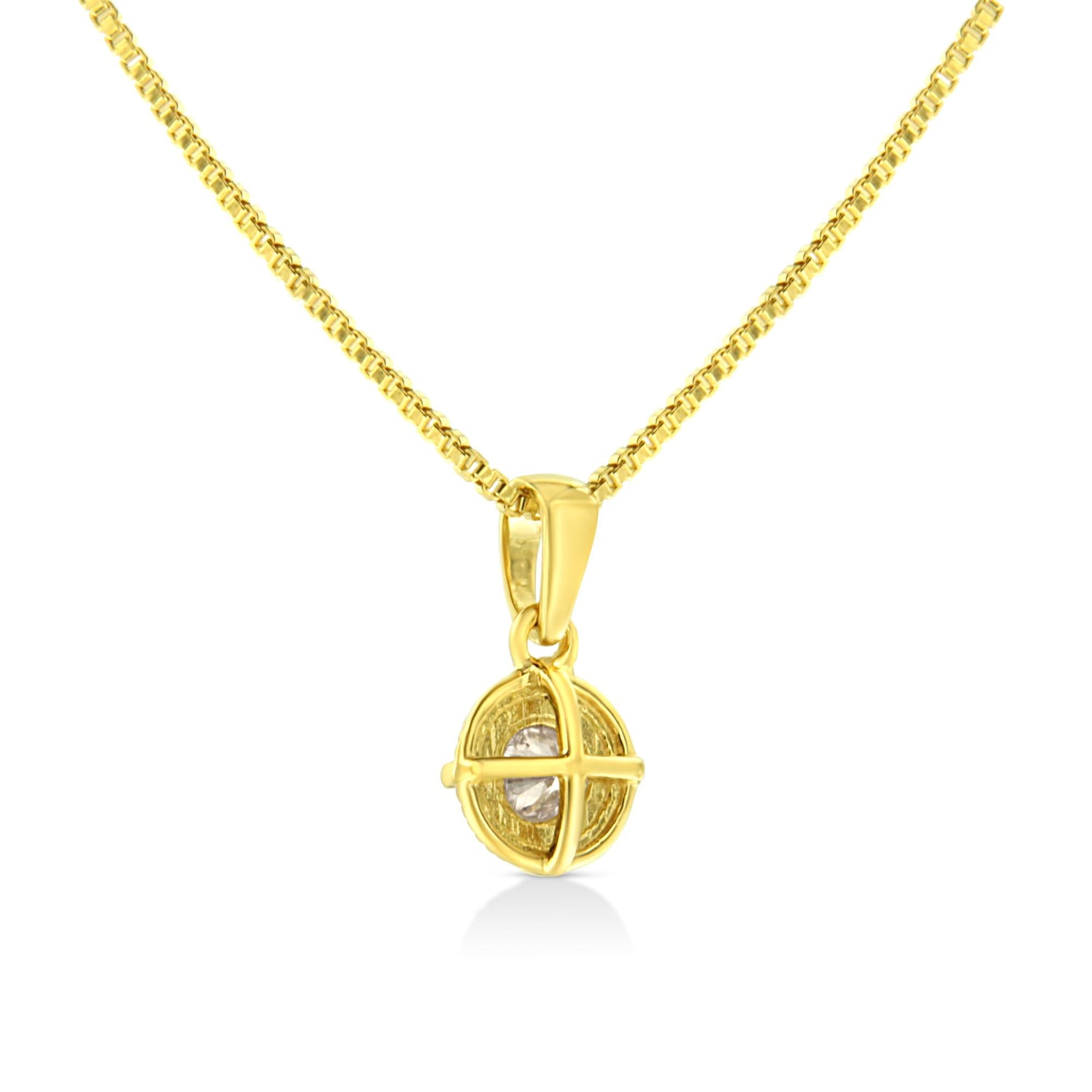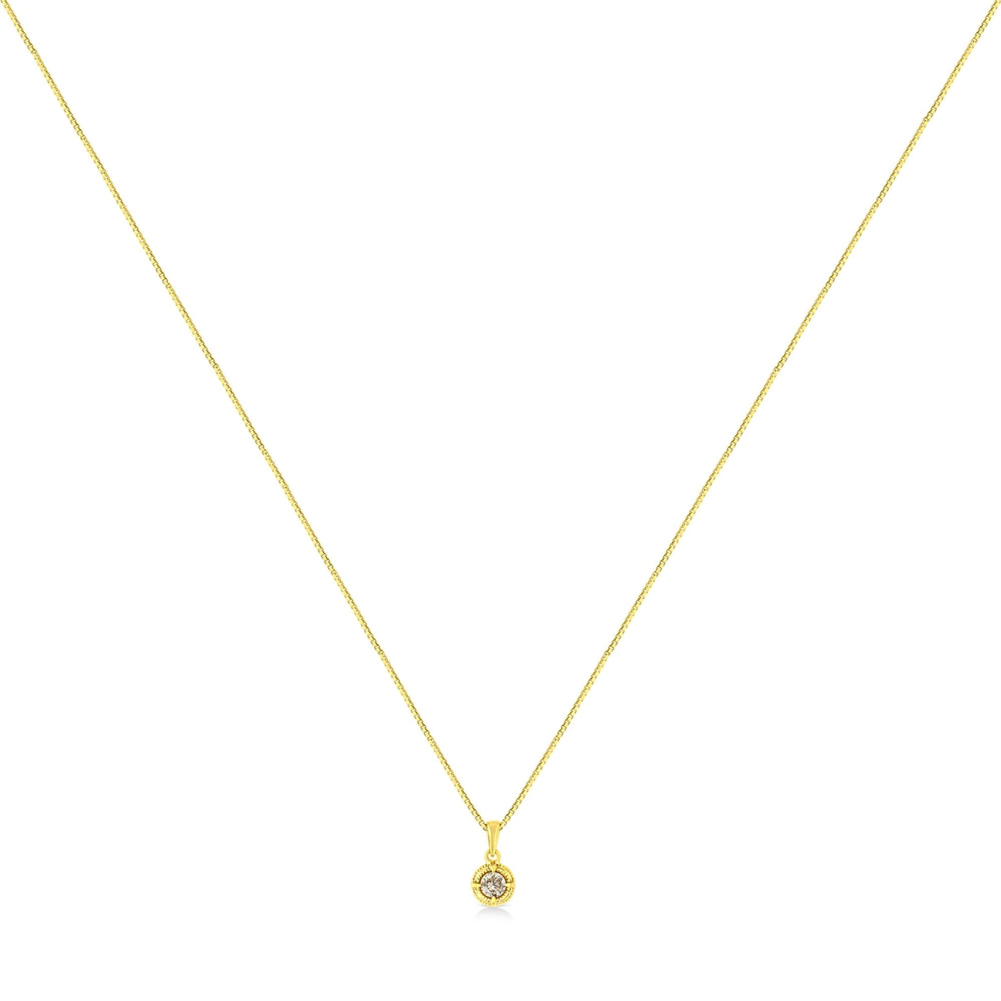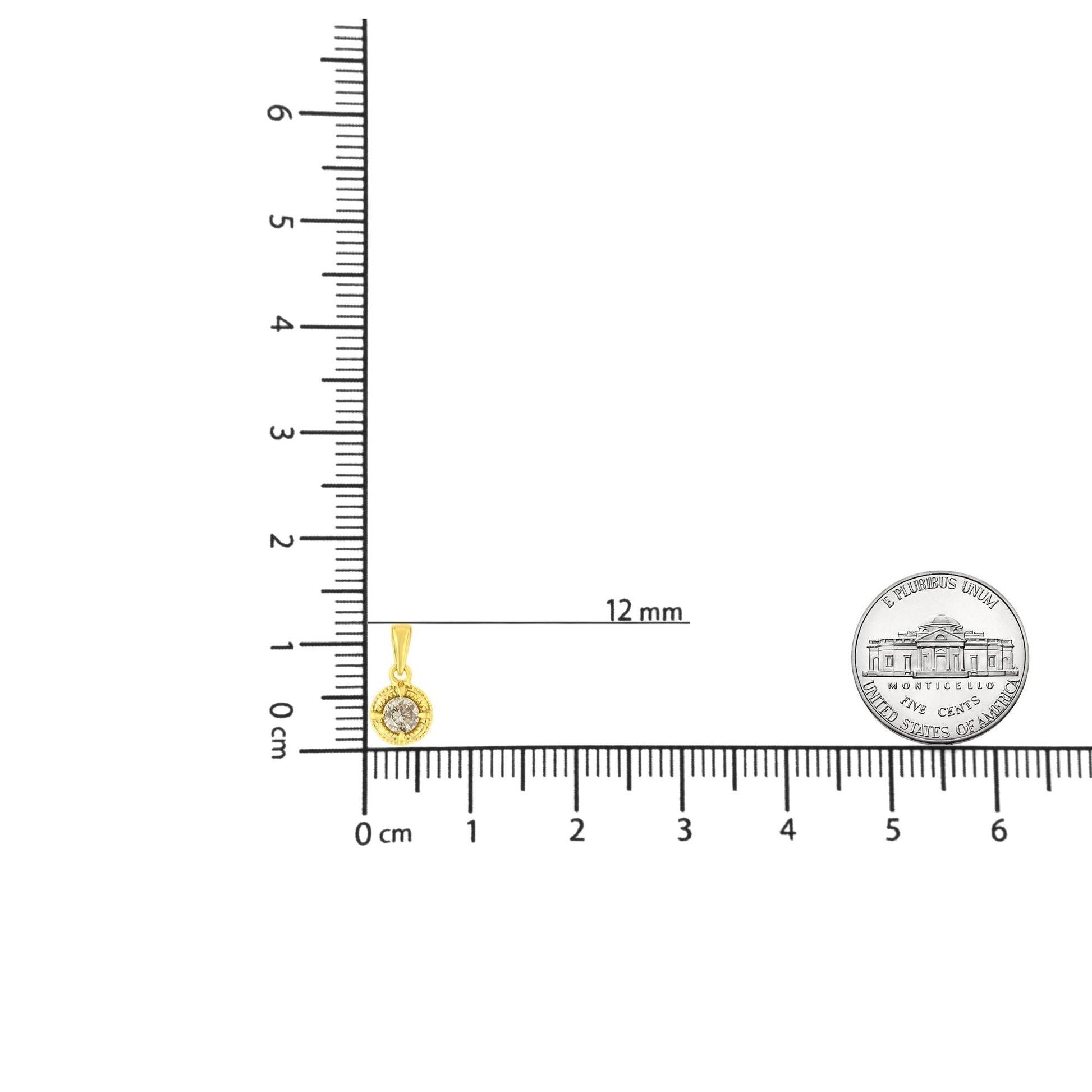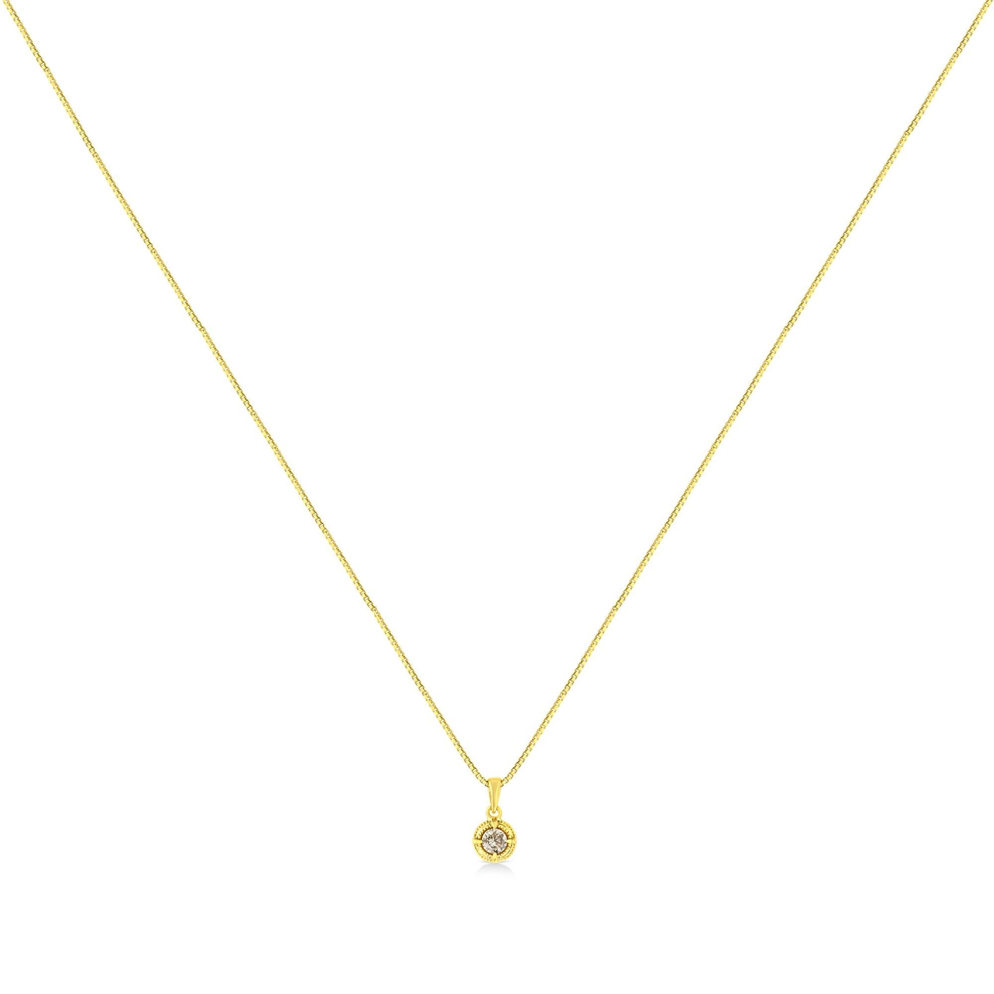 14K Yellow Gold Plated .925 Sterling Silver Brilliant Round Cut Diamond Solitaire Milgrain 18" Pendant Necklace