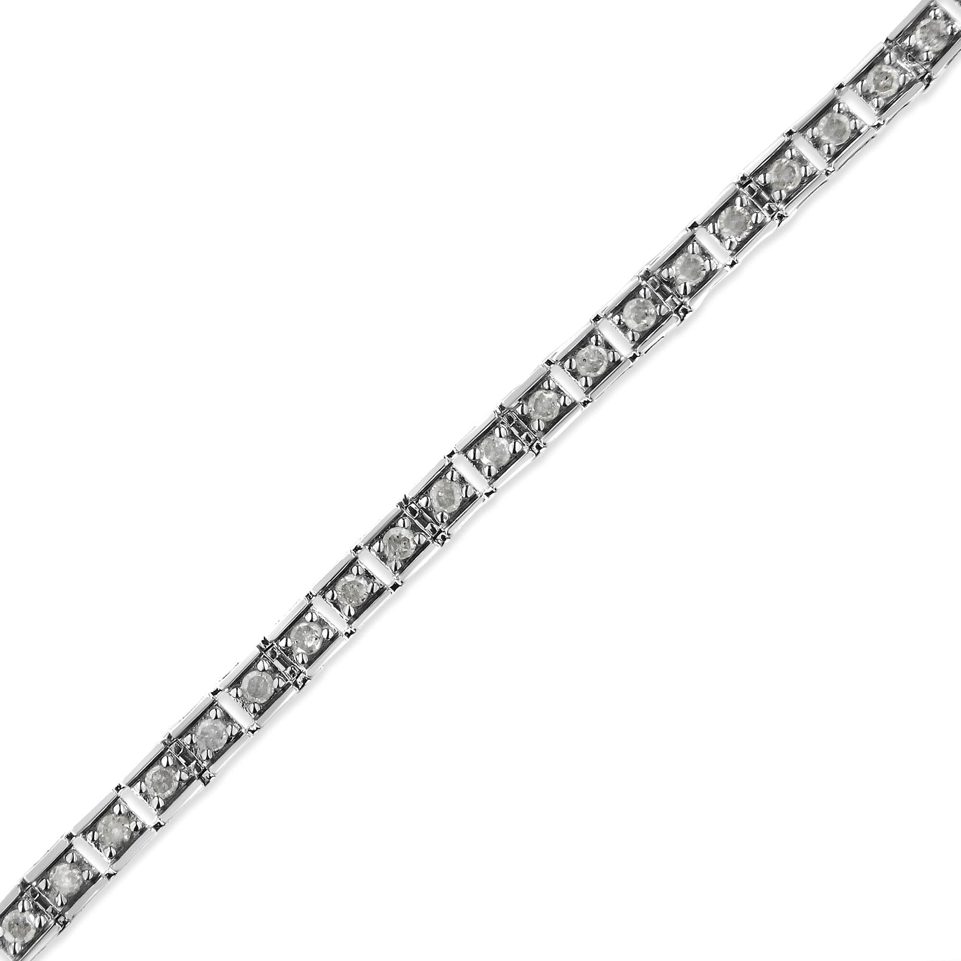 .925 Sterling Silver 1.0 Cttw Diamond Square Hybrid Link 7" Tennis Bracelet (I-J Color, I2-I3 Clarity)