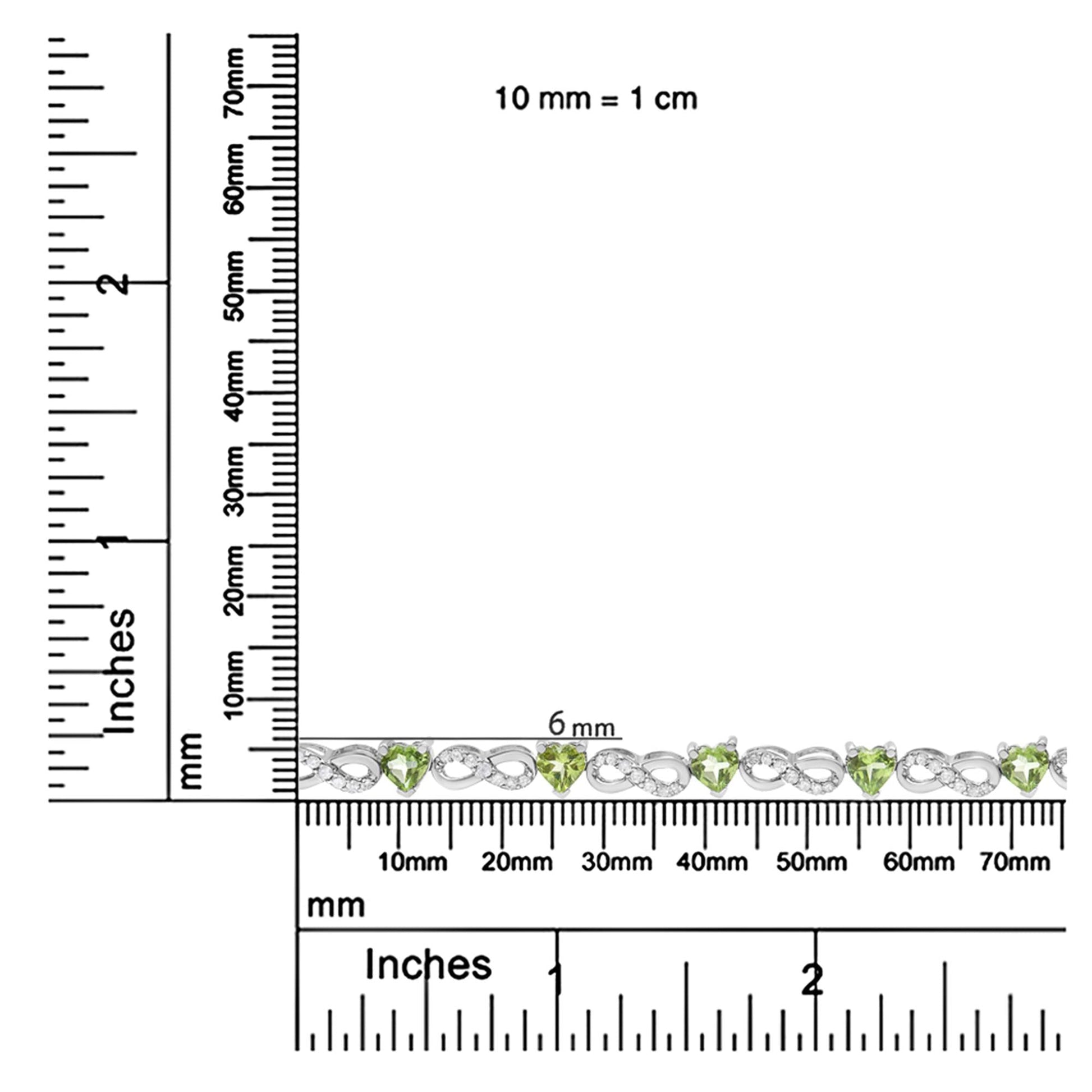 .925 Sterling Silver 1.00 Cttw Diamond and 4.00mm Lab Created Green Heart-Shaped Peridot Infinity Link Bracelet (I-J Color, I2-I3 Clarity) - 7.25"